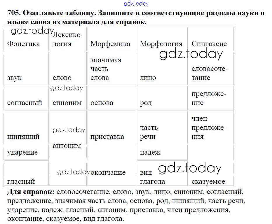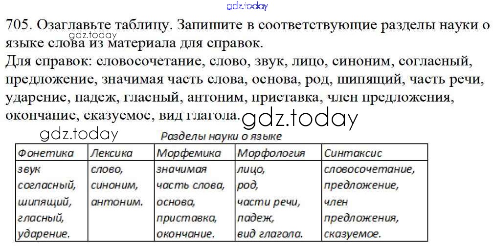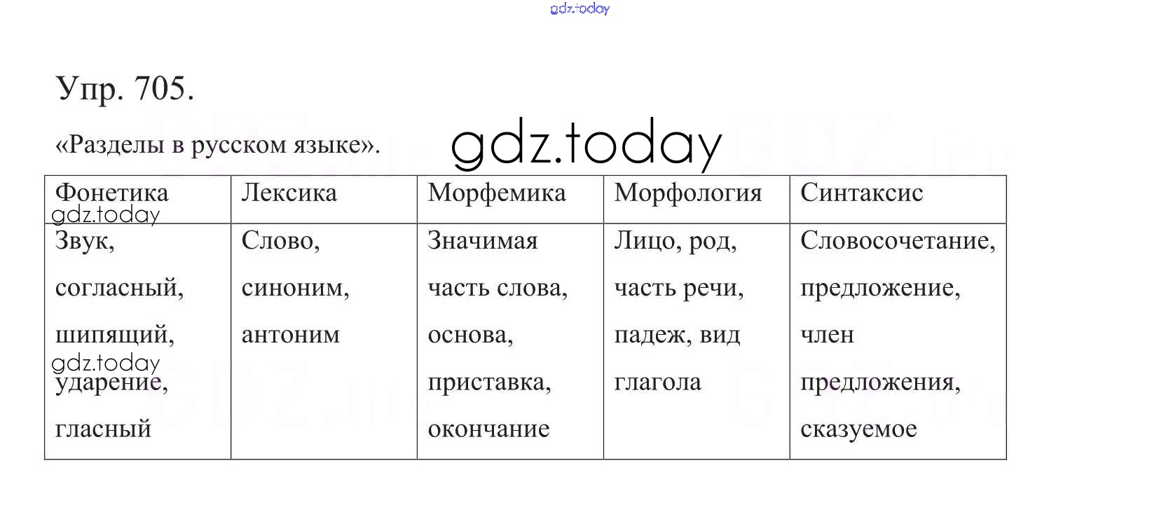 Ответы к Часть 2. Решение к упражнениям 705 Учебнику по Русскому языку для 5 класса Баранов, Ладыженская Просвещение, Просвещение 2016, 2019
