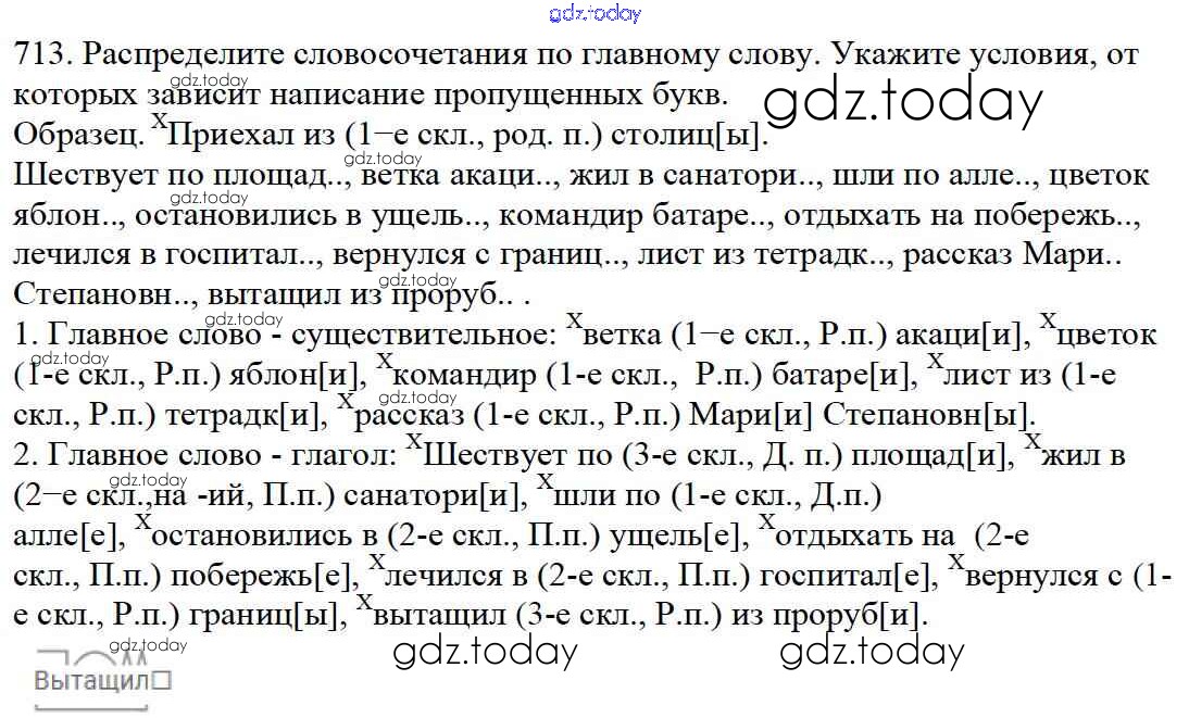 На страницах сайта gdz.today вы найдете учебный и вспомогательный материал, направленный на улучшения знаний школьной программы. ГДЗ - онлайн мир знаний Часть 2. Решение к упражнениям 713 Учебнику по Русскому языку для 5 класса Баранов, Ладыженская Просвещение, Просвещение 2016, 2019