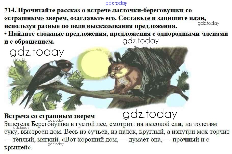 На страницах сайта gdz.today вы найдете учебный и вспомогательный материал, направленный на улучшения знаний школьной программы. ГДЗ - онлайн мир знаний Часть 2. Решение к упражнениям 714 Учебнику по Русскому языку для 5 класса Баранов, Ладыженская Просвещение, Просвещение 2016, 2019