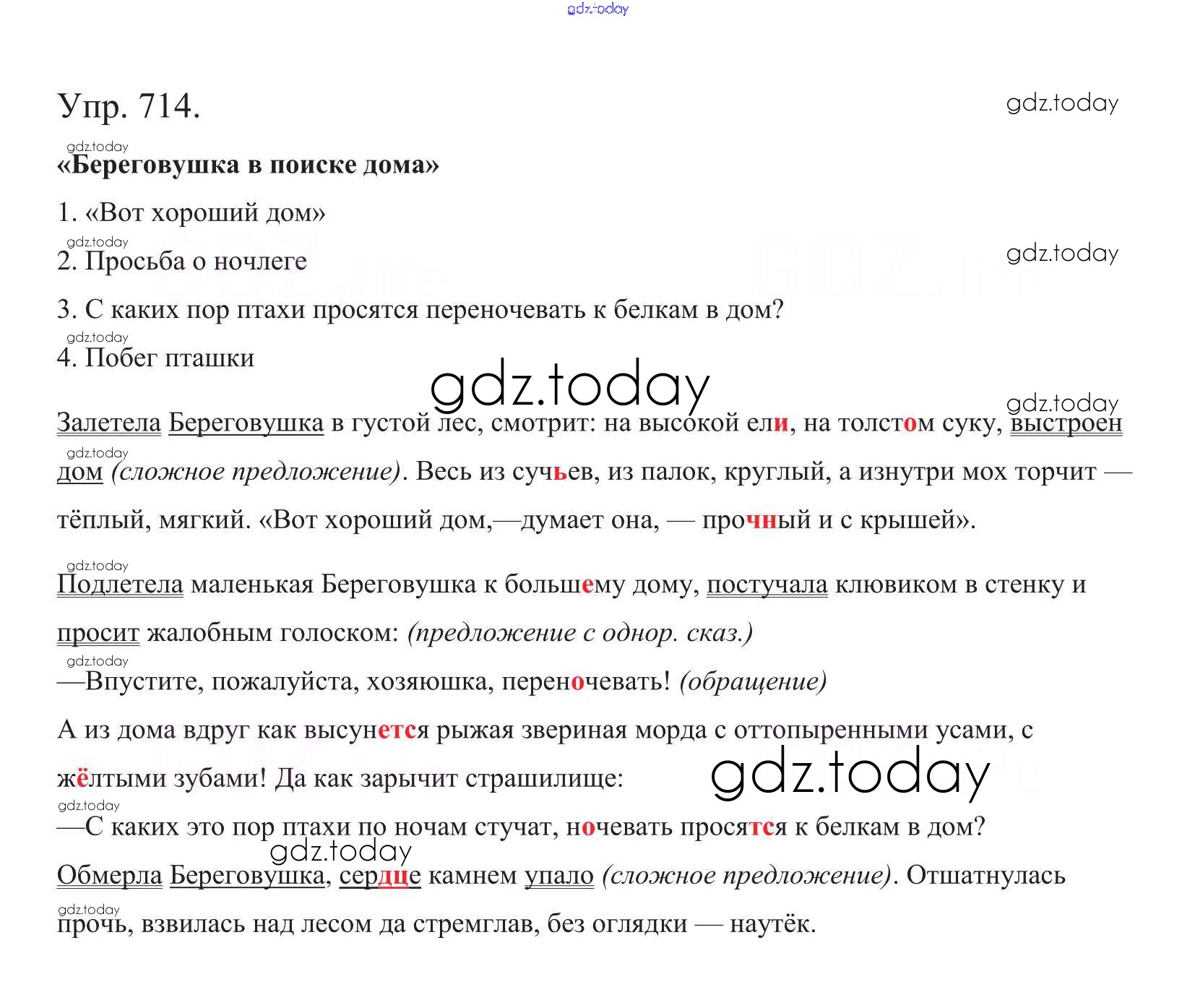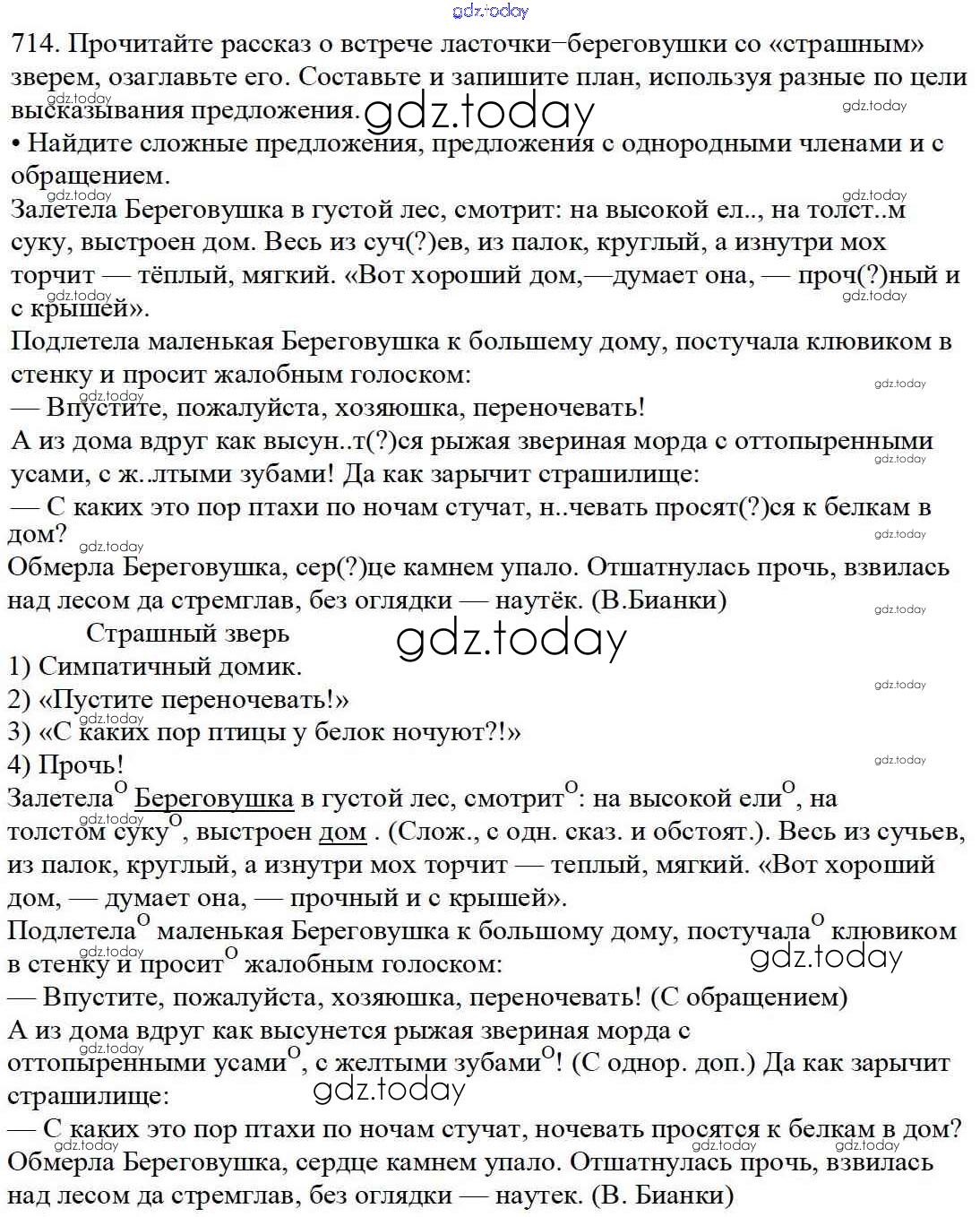 Ответы к Часть 2. Решение к упражнениям 714 Учебнику по Русскому языку для 5 класса Баранов, Ладыженская Просвещение, Просвещение 2016, 2019