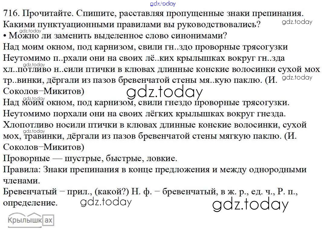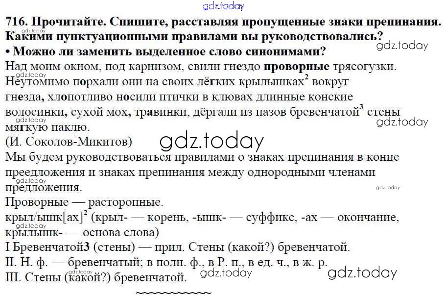 Ответы к Часть 2. Решение к упражнениям 716 Учебнику по Русскому языку для 5 класса Баранов, Ладыженская Просвещение, Просвещение 2016, 2019