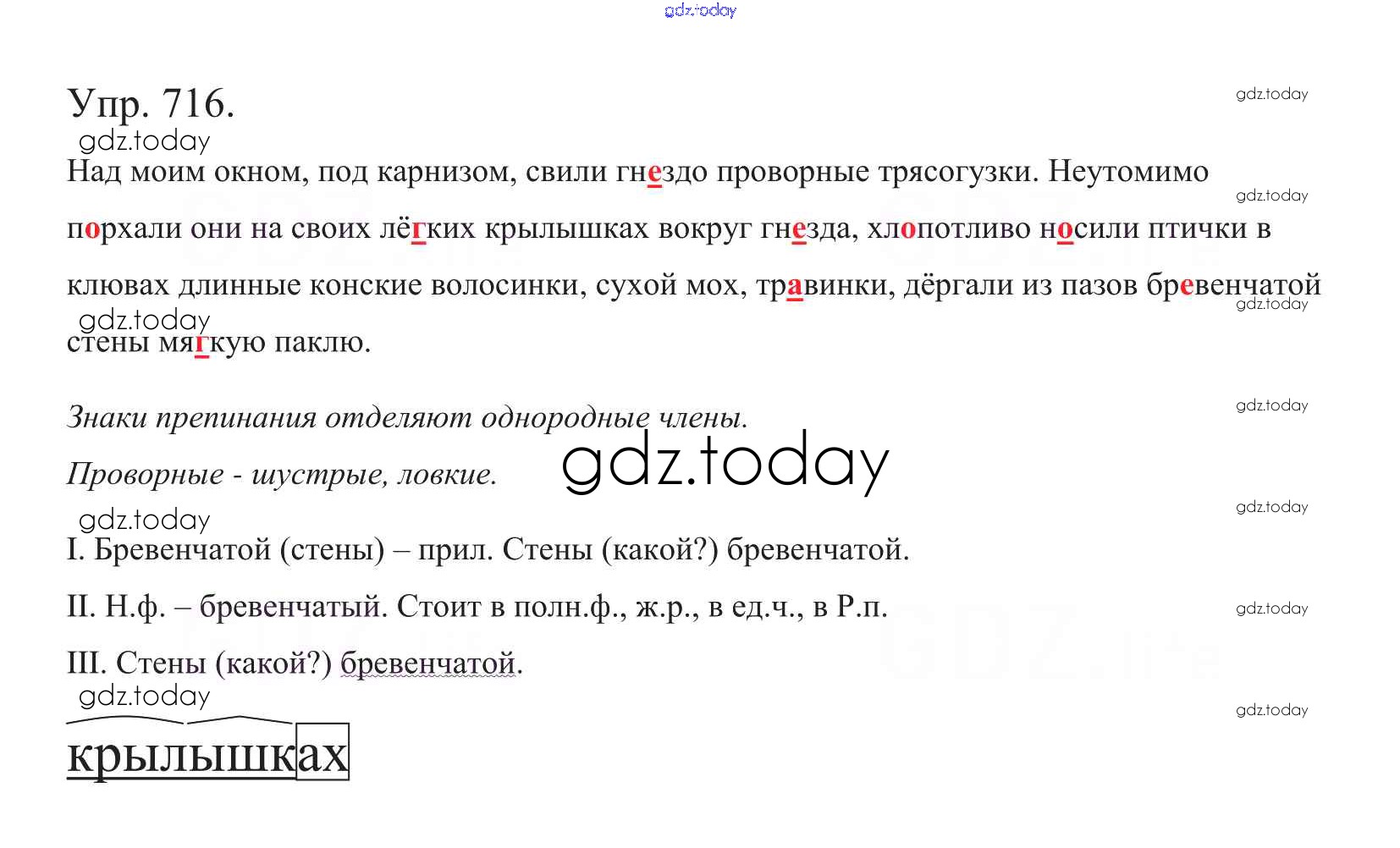 На страницах сайта gdz.today вы найдете учебный и вспомогательный материал, направленный на улучшения знаний школьной программы. ГДЗ - онлайн мир знаний Часть 2. Решение к упражнениям 716 Учебнику по Русскому языку для 5 класса Баранов, Ладыженская Просвещение, Просвещение 2016, 2019