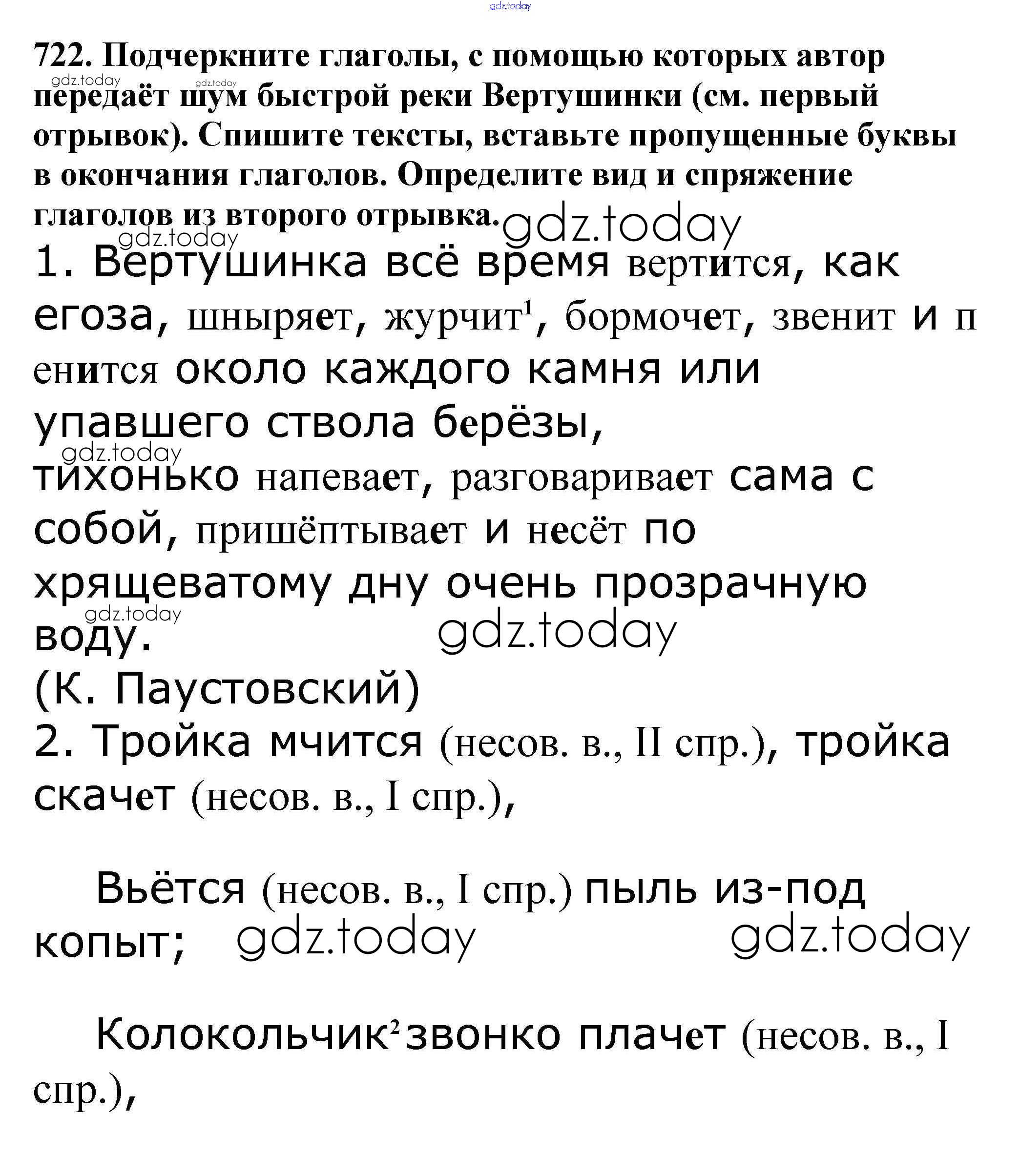 Ответы к Часть 2. Решение к упражнениям 722 Учебнику по Русскому языку для 5 класса Баранов, Ладыженская Просвещение, Просвещение 2016, 2019