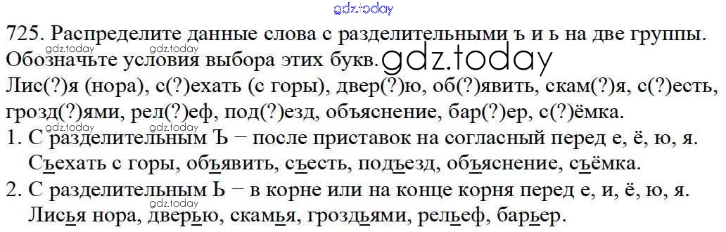 Ответы к Часть 2. Решение к упражнениям 725 Учебнику по Русскому языку для 5 класса Баранов, Ладыженская Просвещение, Просвещение 2016, 2019
