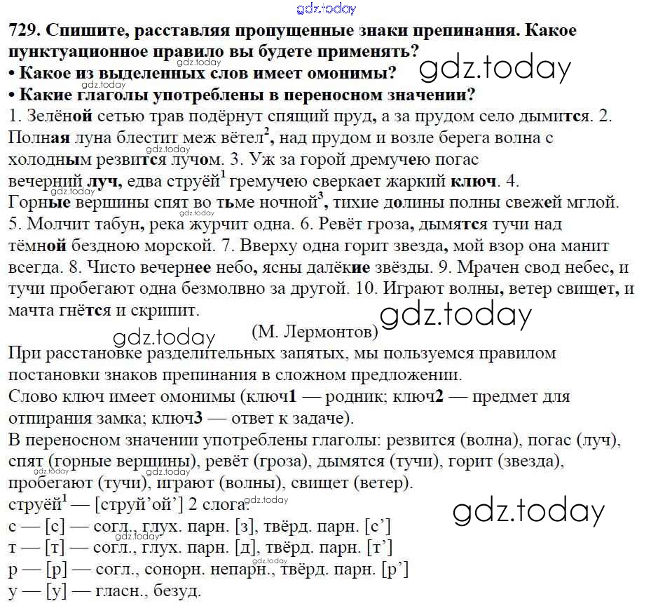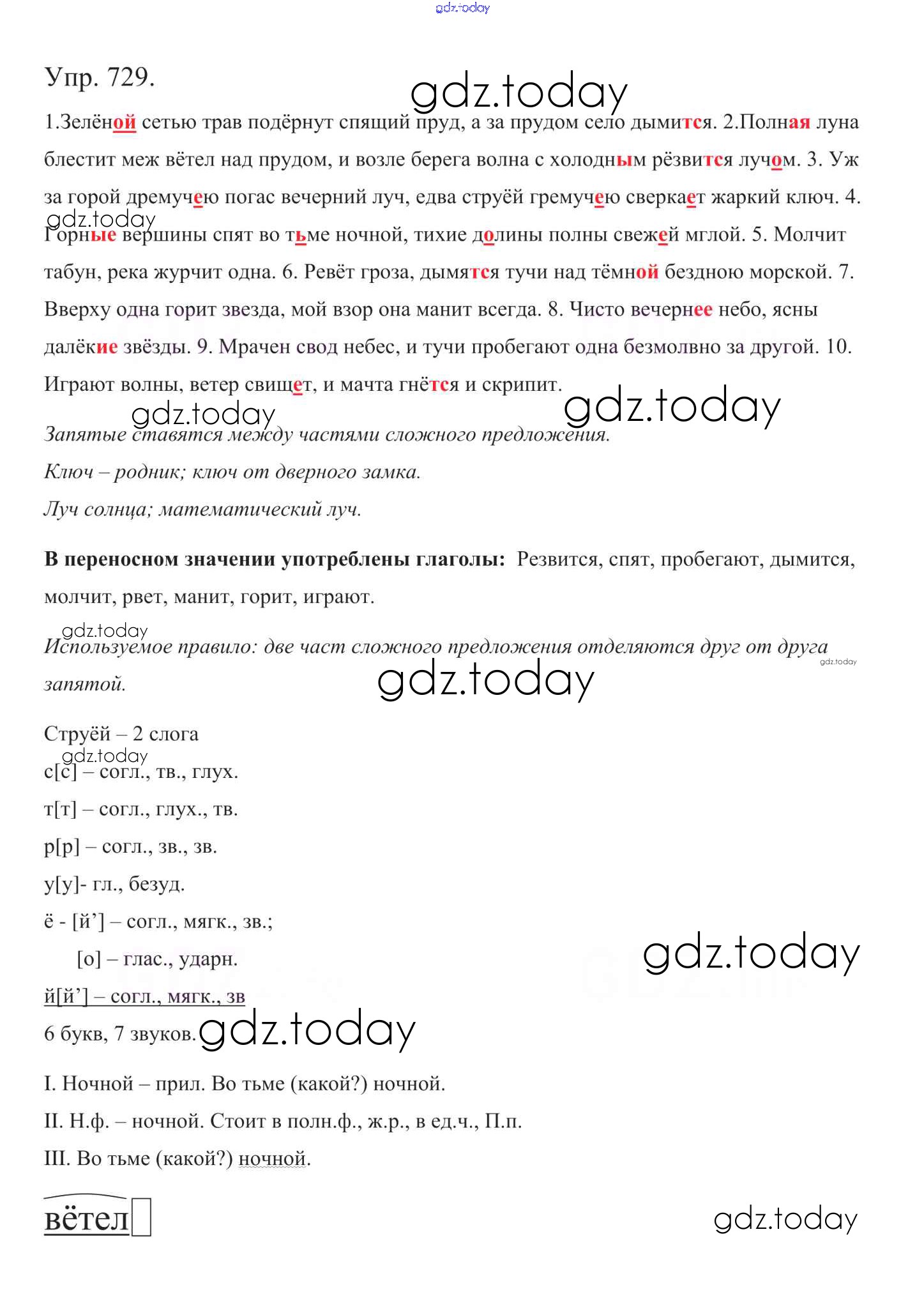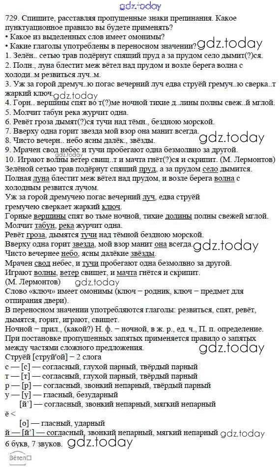 Ответы к Часть 2. Решение к упражнениям 729 Учебнику по Русскому языку для 5 класса Баранов, Ладыженская Просвещение, Просвещение 2016, 2019