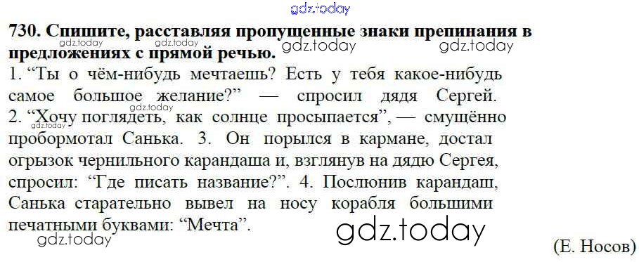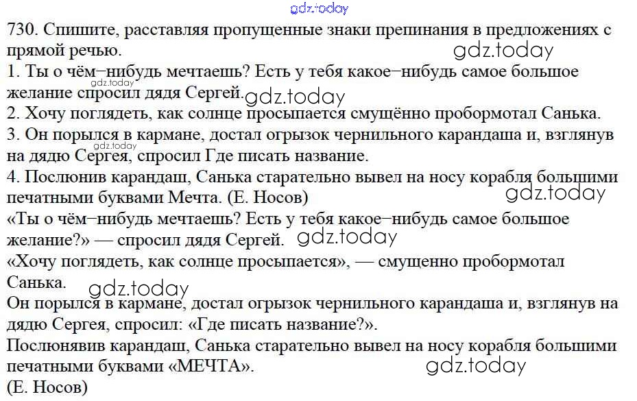 Ответы к Часть 2. Решение к упражнениям 730 Учебнику по Русскому языку для 5 класса Баранов, Ладыженская Просвещение, Просвещение 2016, 2019