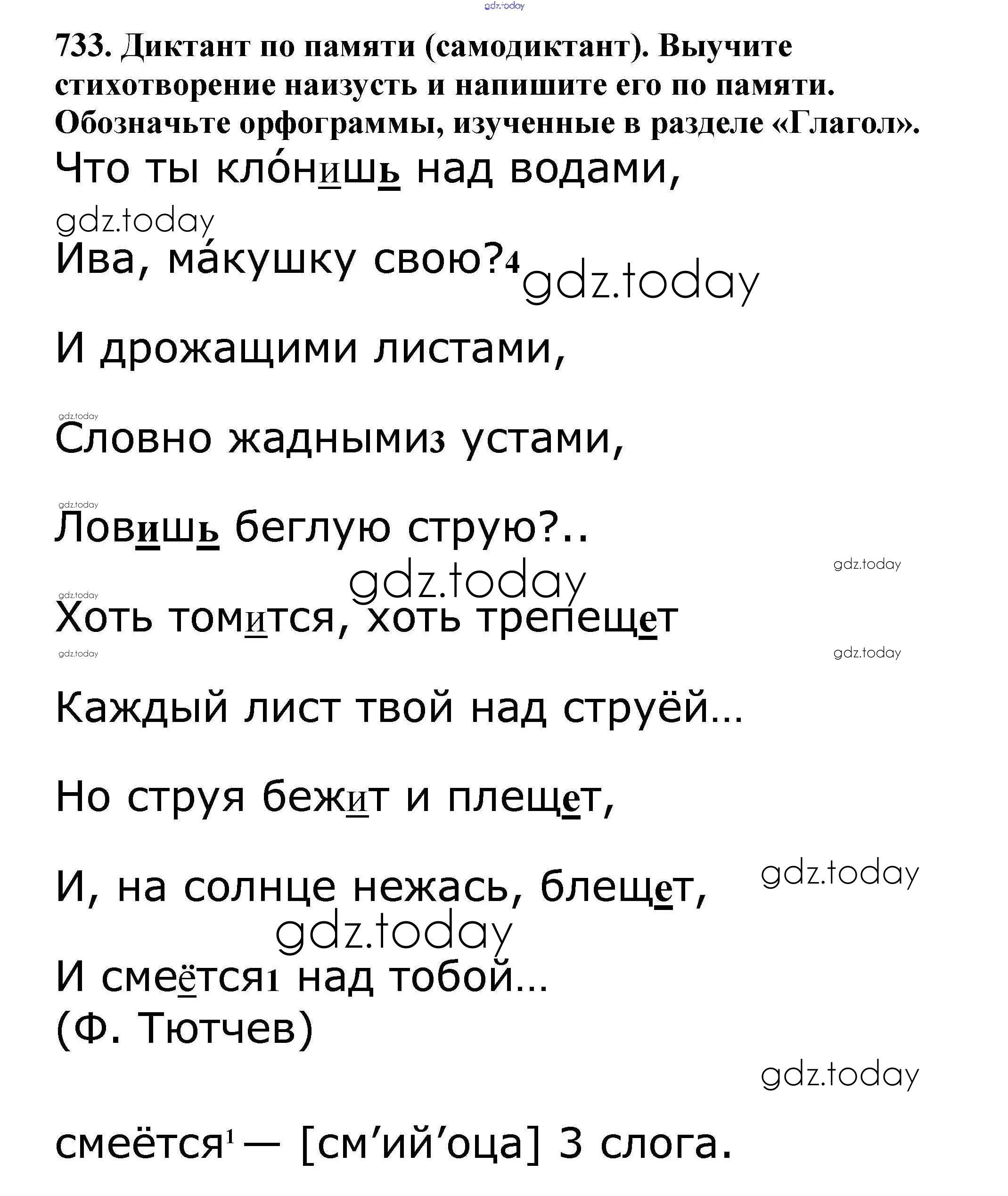 Ответы к Часть 2. Решение к упражнениям 733 Учебнику по Русскому языку для 5 класса Баранов, Ладыженская Просвещение, Просвещение 2016, 2019