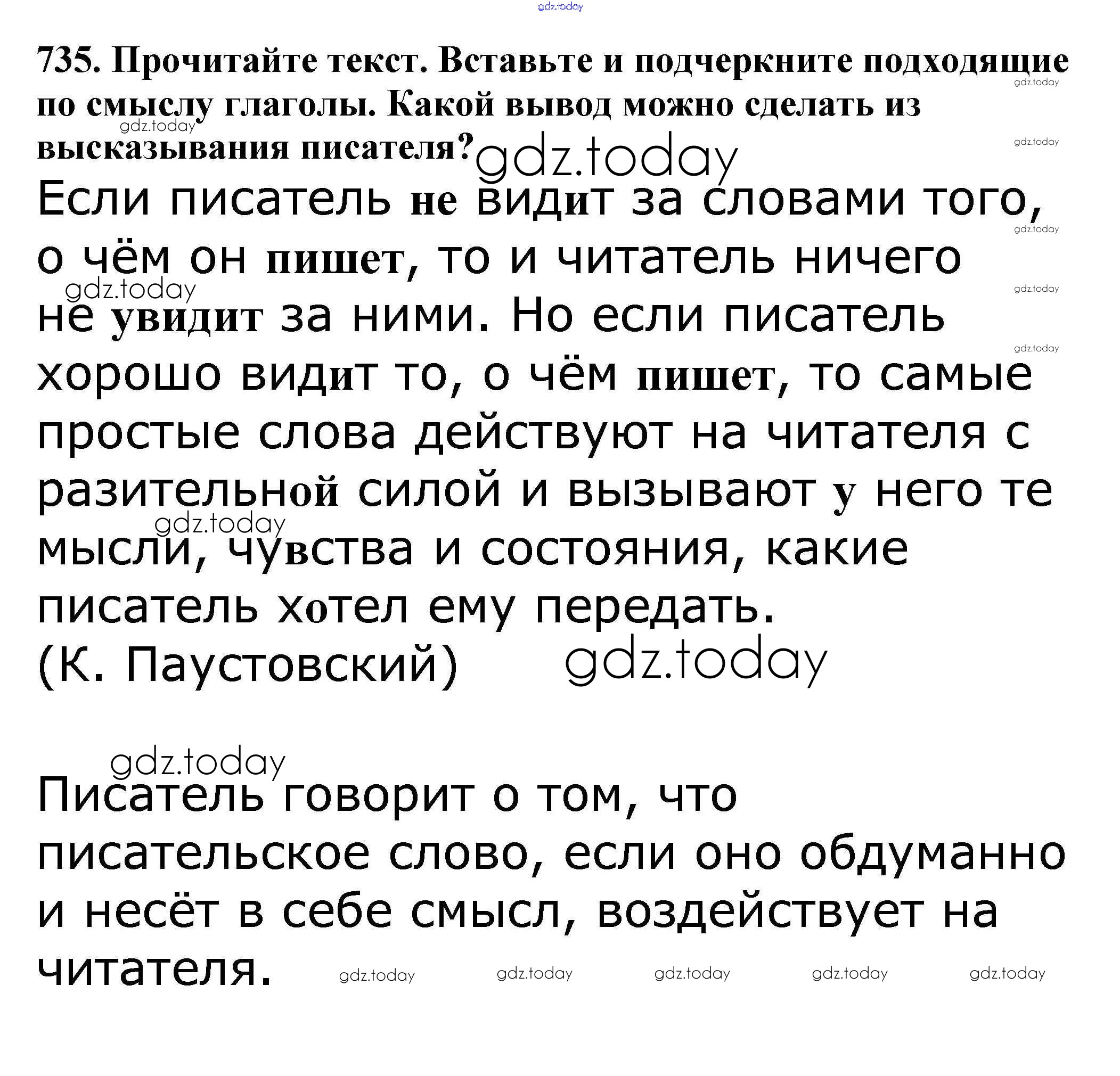 Ответы к Часть 2. Решение к упражнениям 735 Учебнику по Русскому языку для 5 класса Баранов, Ладыженская Просвещение, Просвещение 2016, 2019