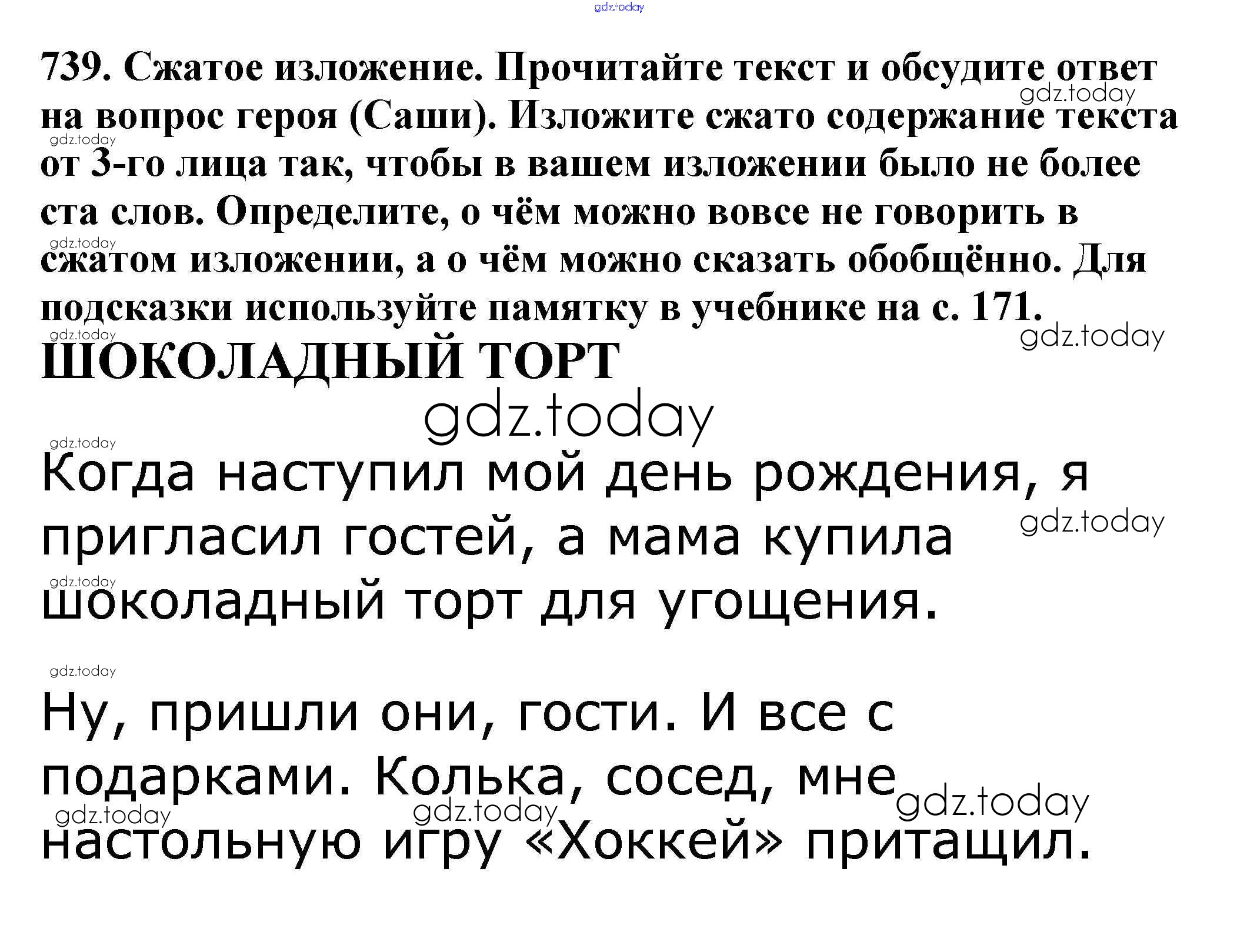 Ответы к Часть 2. Решение к упражнениям 739 Учебнику по Русскому языку для 5 класса Баранов, Ладыженская Просвещение, Просвещение 2016, 2019
