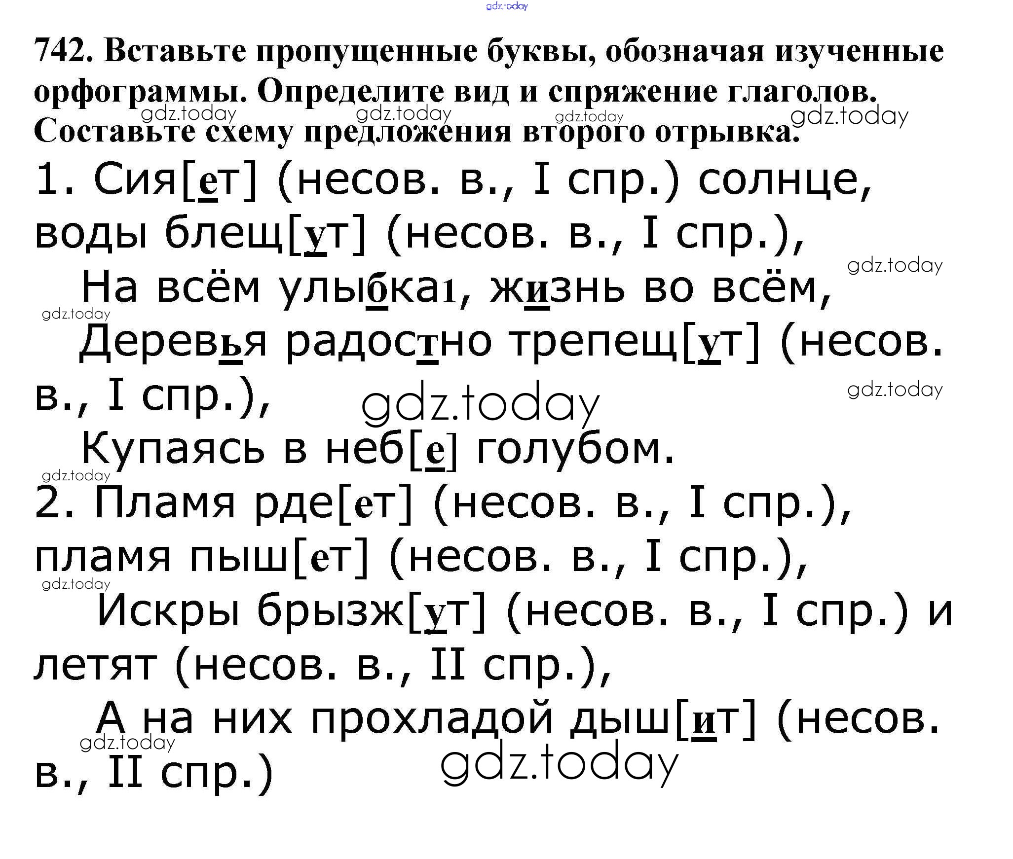 Ответы к Часть 2. Решение к упражнениям 742 Учебнику по Русскому языку для 5 класса Баранов, Ладыженская Просвещение, Просвещение 2016, 2019