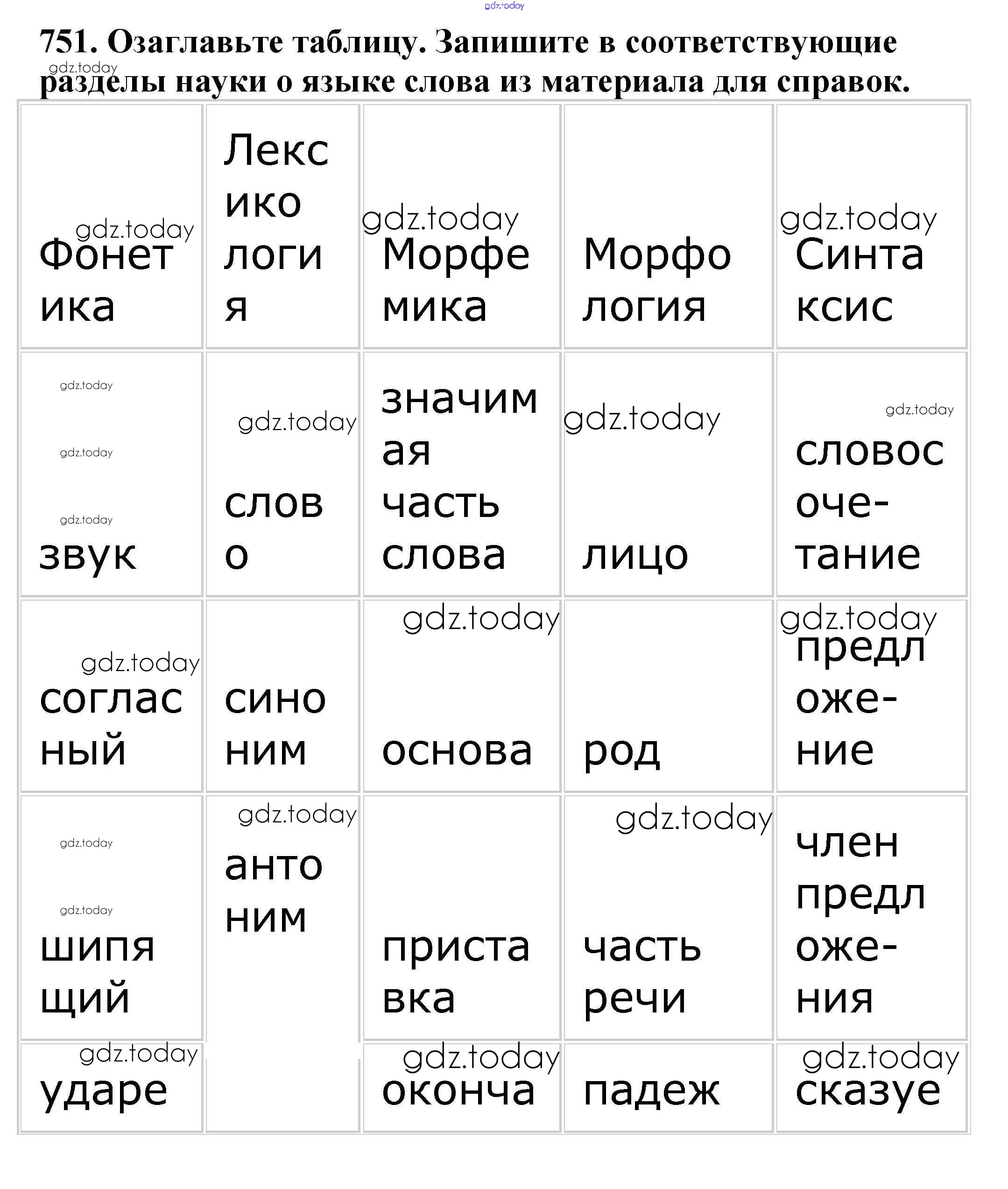 Ответы к Часть 2. Решение к упражнениям 751 Учебнику по Русскому языку для 5 класса Баранов, Ладыженская Просвещение, Просвещение 2016, 2019