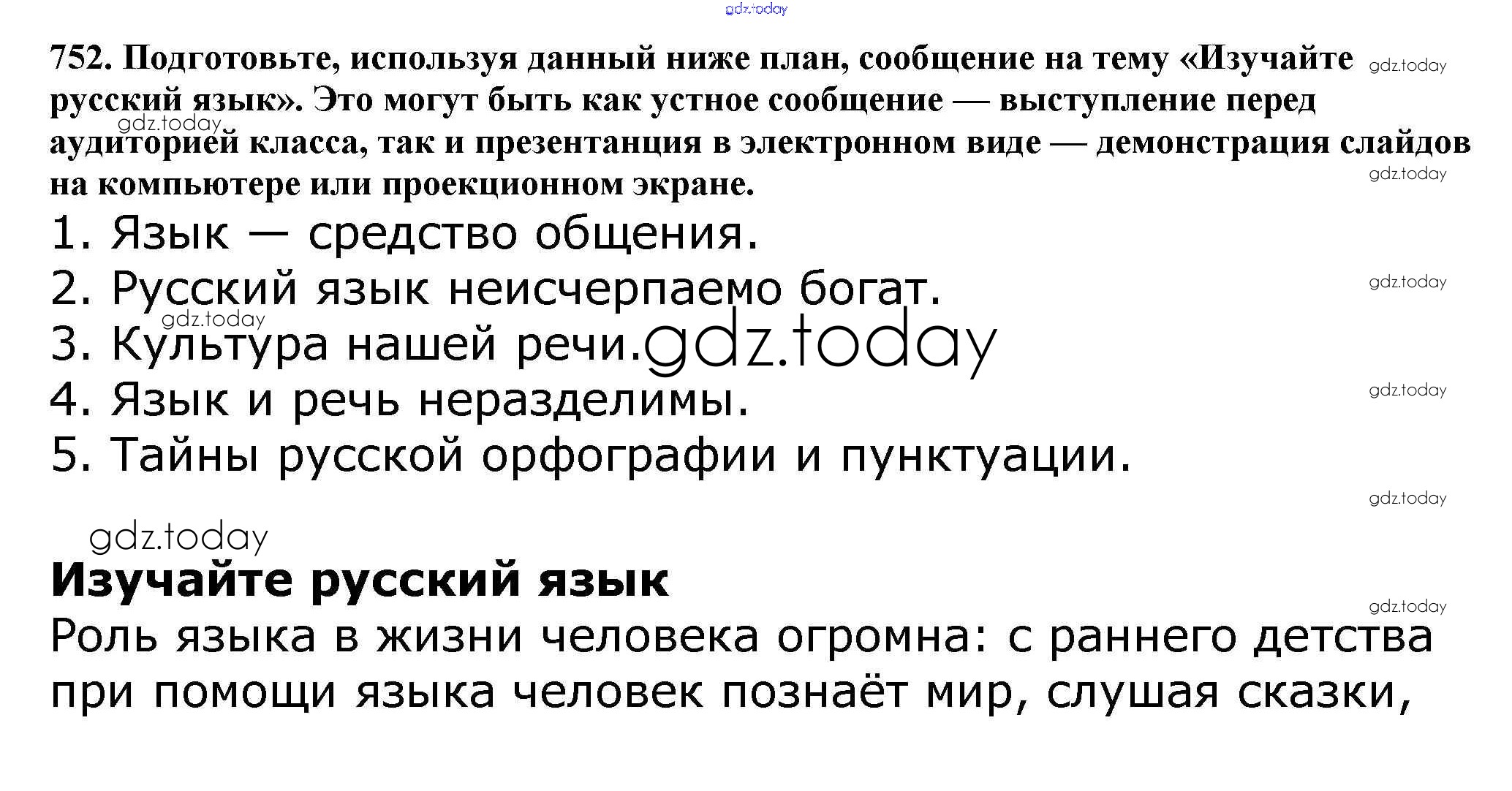 Ответы к Часть 2. Решение к упражнениям 752 Учебнику по Русскому языку для 5 класса Баранов, Ладыженская Просвещение, Просвещение 2016, 2019
