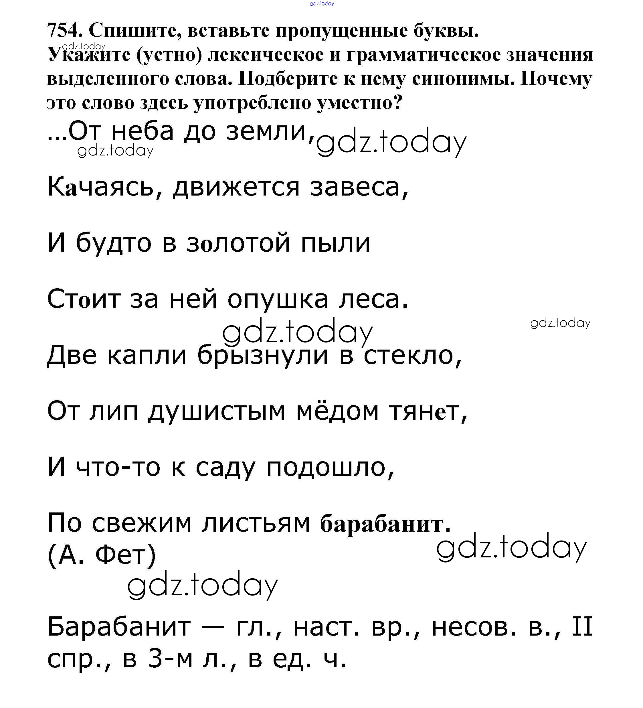 Ответы к Часть 2. Решение к упражнениям 754 Учебнику по Русскому языку для 5 класса Баранов, Ладыженская Просвещение, Просвещение 2016, 2019