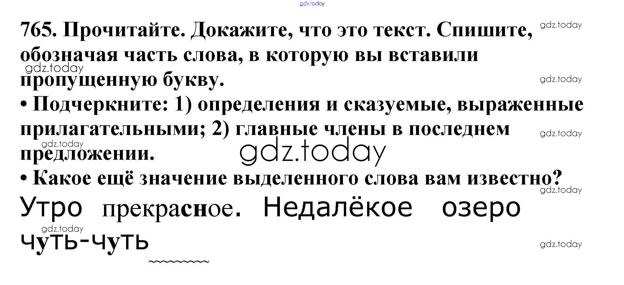На страницах сайта gdz.today вы найдете учебный и вспомогательный материал, направленный на улучшения знаний школьной программы. ГДЗ - онлайн мир знаний Часть 2. Решение к упражнениям 765 Учебнику по Русскому языку для 5 класса Баранов, Ладыженская Просвещение, Просвещение 2016, 2019