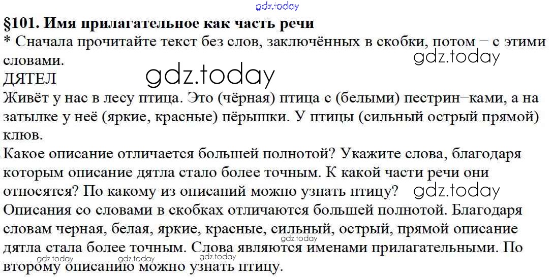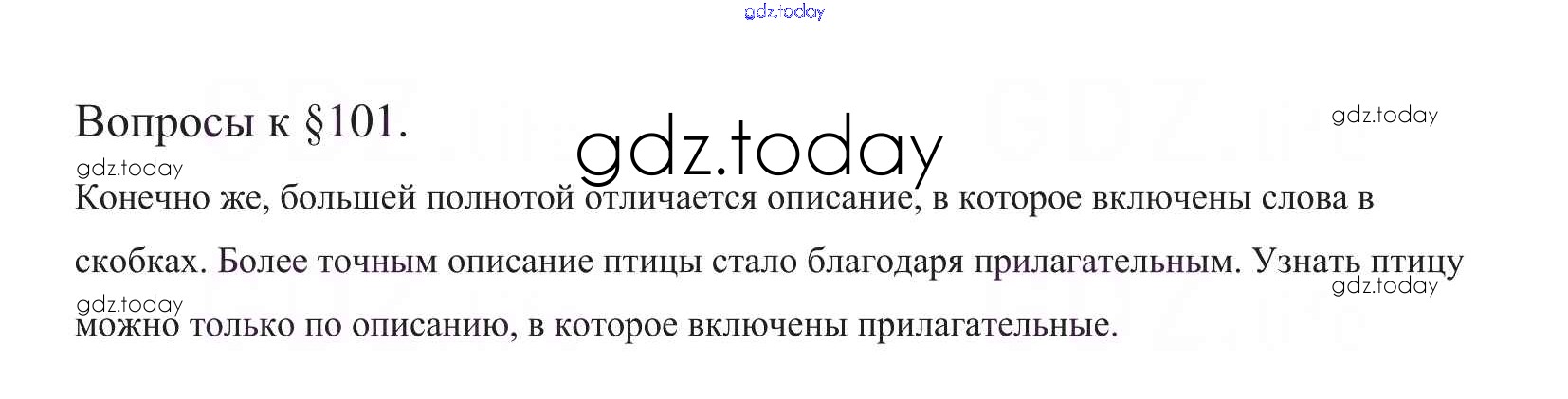 На страницах сайта gdz.today вы найдете учебный и вспомогательный материал, направленный на улучшения знаний школьной программы. ГДЗ - онлайн мир знаний Решение к вопросам §101 Учебнику по Русскому языку для 5 класса Баранов, Ладыженская Просвещение, Просвещение 2016, 2019