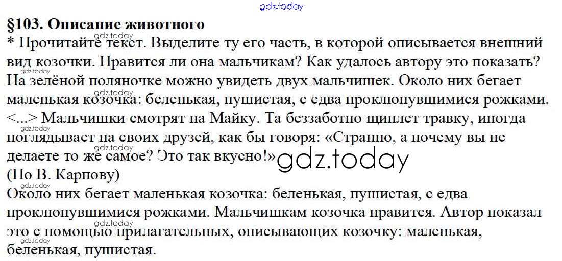На страницах сайта gdz.today вы найдете учебный и вспомогательный материал, направленный на улучшения знаний школьной программы. ГДЗ - онлайн мир знаний Решение к вопросам §103 Учебнику по Русскому языку для 5 класса Баранов, Ладыженская Просвещение, Просвещение 2016, 2019