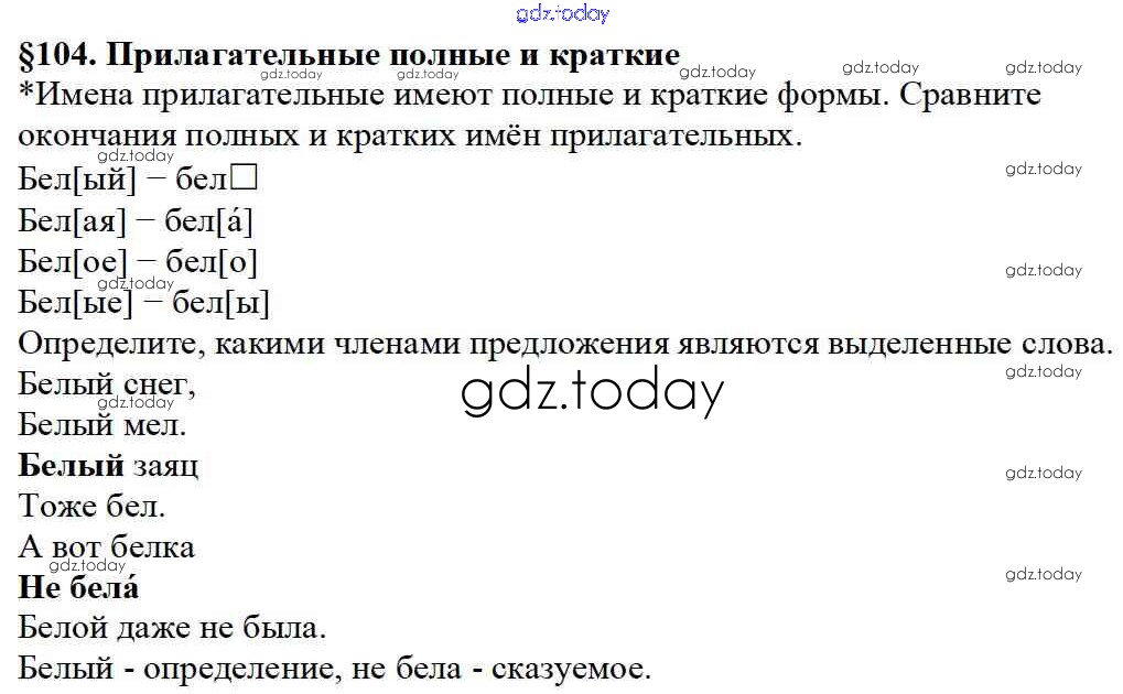 На страницах сайта gdz.today вы найдете учебный и вспомогательный материал, направленный на улучшения знаний школьной программы. ГДЗ - онлайн мир знаний Решение к вопросам §104 Учебнику по Русскому языку для 5 класса Баранов, Ладыженская Просвещение, Просвещение 2016, 2019