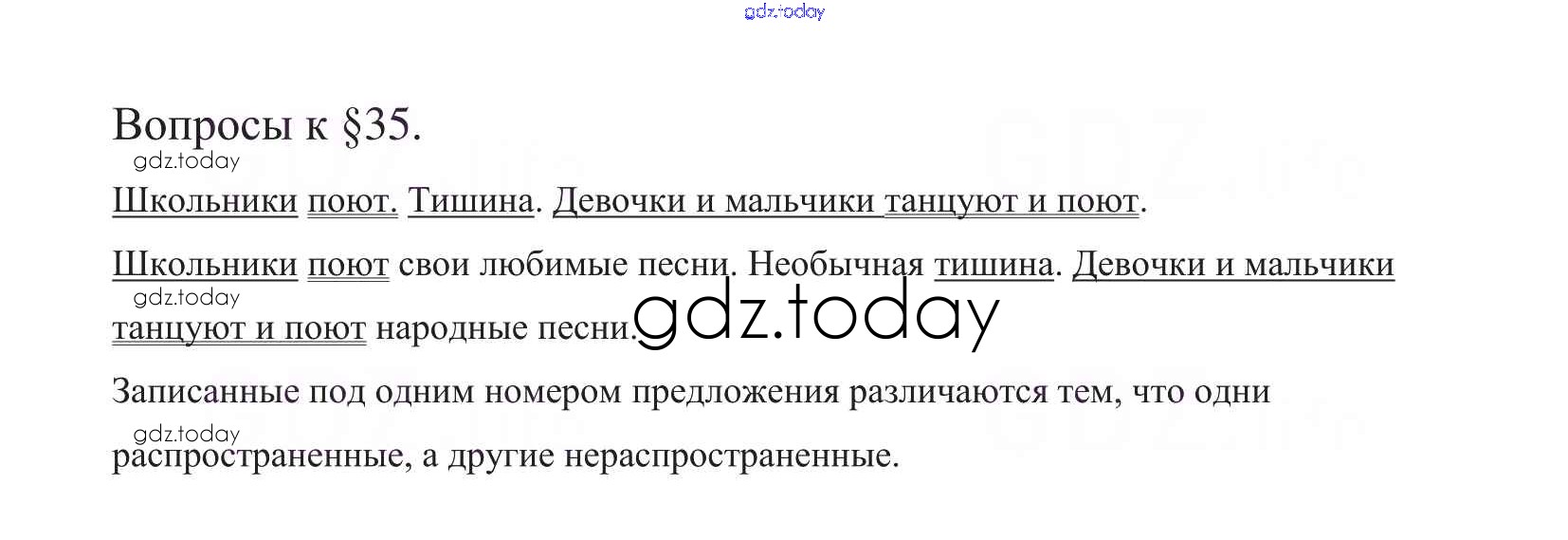 На страницах сайта gdz.today вы найдете учебный и вспомогательный материал, направленный на улучшения знаний школьной программы. ГДЗ - онлайн мир знаний Решение к вопросам §35 Учебнику по Русскому языку для 5 класса Баранов, Ладыженская Просвещение, Просвещение 2016, 2019