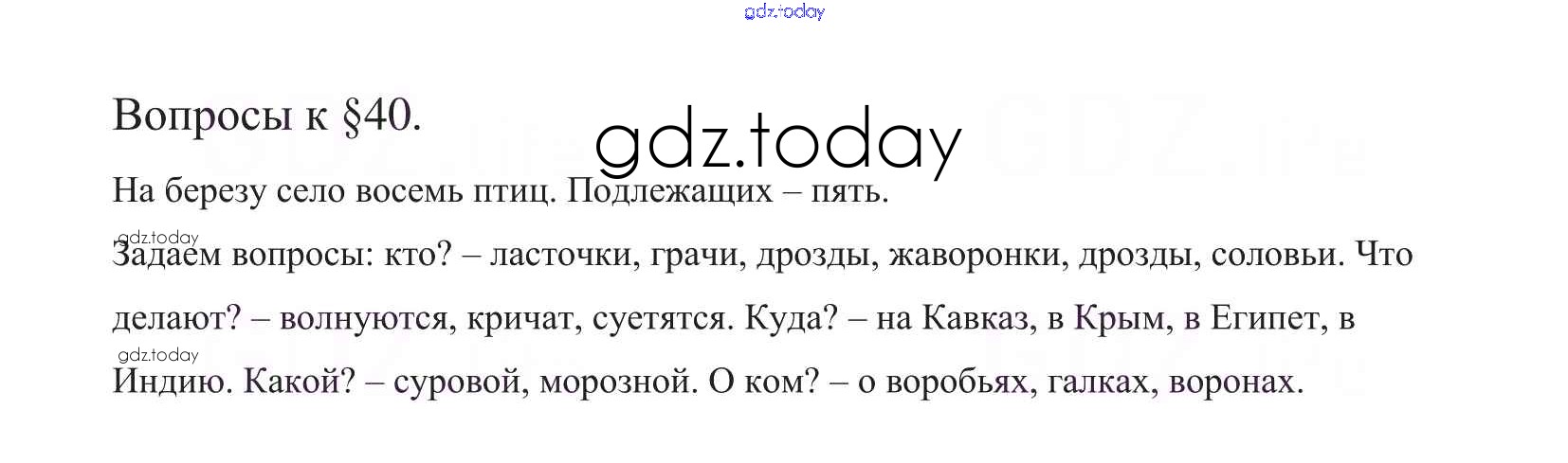 На страницах сайта gdz.today вы найдете учебный и вспомогательный материал, направленный на улучшения знаний школьной программы. ГДЗ - онлайн мир знаний Решение к вопросам §40 Учебнику по Русскому языку для 5 класса Баранов, Ладыженская Просвещение, Просвещение 2016, 2019