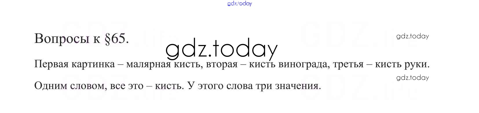 На страницах сайта gdz.today вы найдете учебный и вспомогательный материал, направленный на улучшения знаний школьной программы. ГДЗ - онлайн мир знаний Решение к вопросам §65 Учебнику по Русскому языку для 5 класса Баранов, Ладыженская Просвещение, Просвещение 2016, 2019