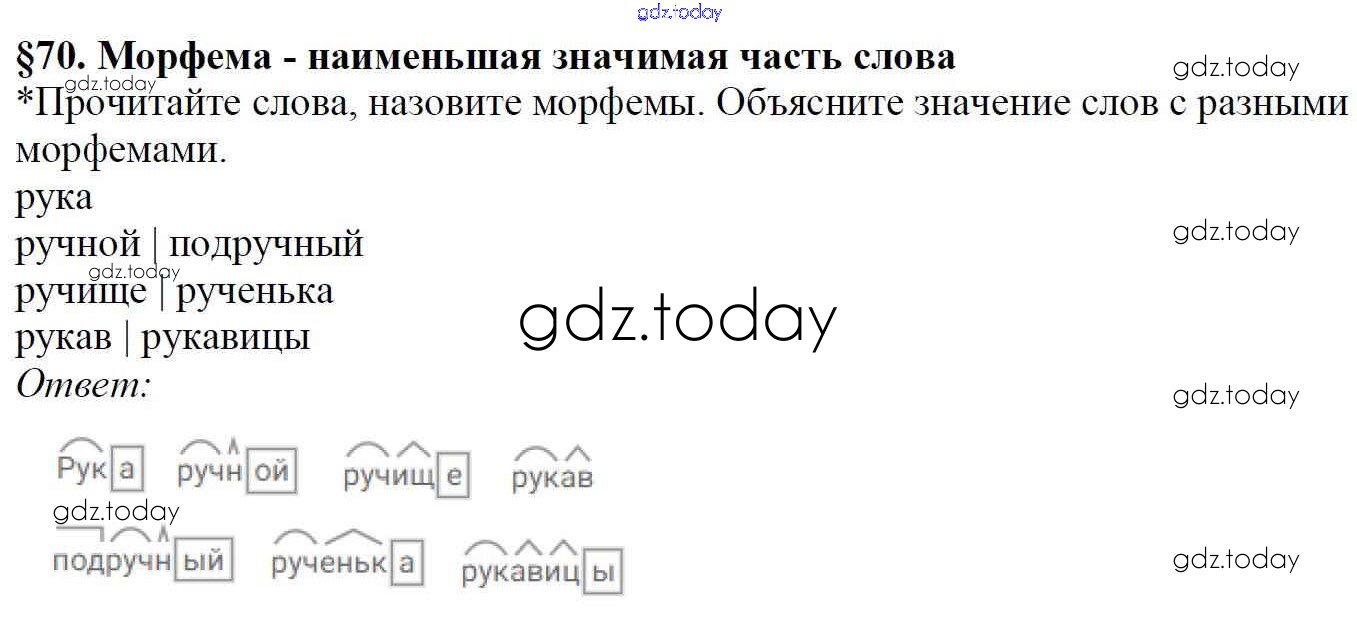 На страницах сайта gdz.today вы найдете учебный и вспомогательный материал, направленный на улучшения знаний школьной программы. ГДЗ - онлайн мир знаний Решение к вопросам §70 Учебнику по Русскому языку для 5 класса Баранов, Ладыженская Просвещение, Просвещение 2016, 2019