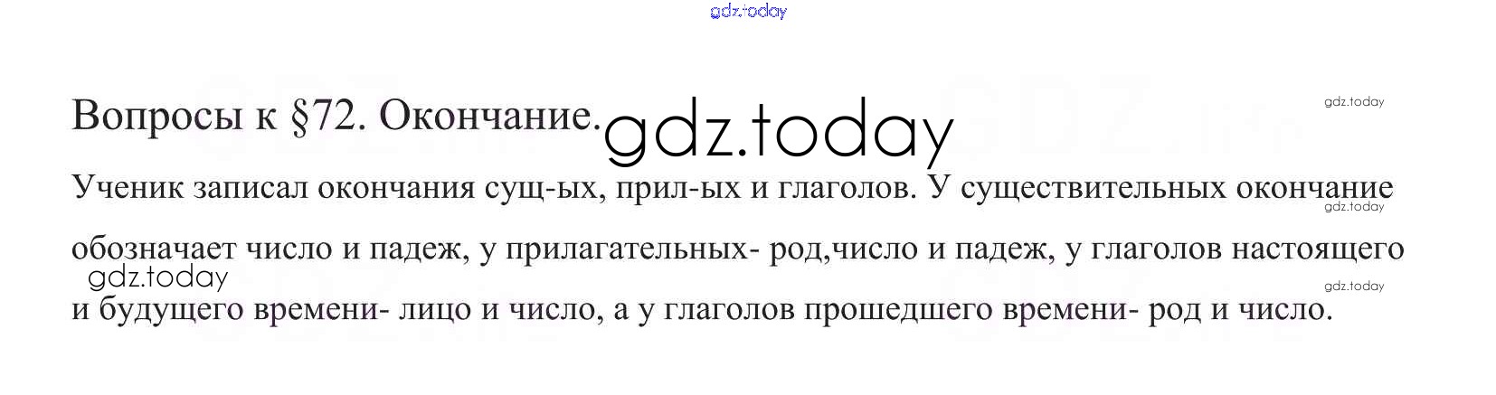 На страницах сайта gdz.today вы найдете учебный и вспомогательный материал, направленный на улучшения знаний школьной программы. ГДЗ - онлайн мир знаний Решение к вопросам §72 Учебнику по Русскому языку для 5 класса Баранов, Ладыженская Просвещение, Просвещение 2016, 2019