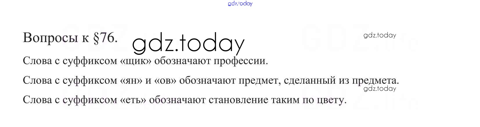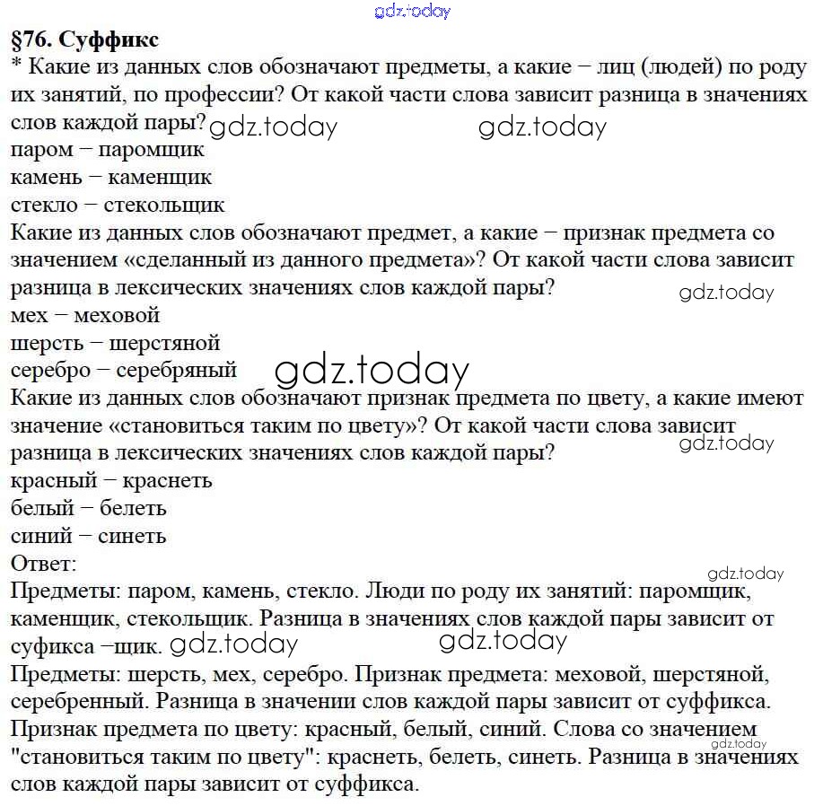 На страницах сайта gdz.today вы найдете учебный и вспомогательный материал, направленный на улучшения знаний школьной программы. ГДЗ - онлайн мир знаний Решение к вопросам §76 Учебнику по Русскому языку для 5 класса Баранов, Ладыженская Просвещение, Просвещение 2016, 2019