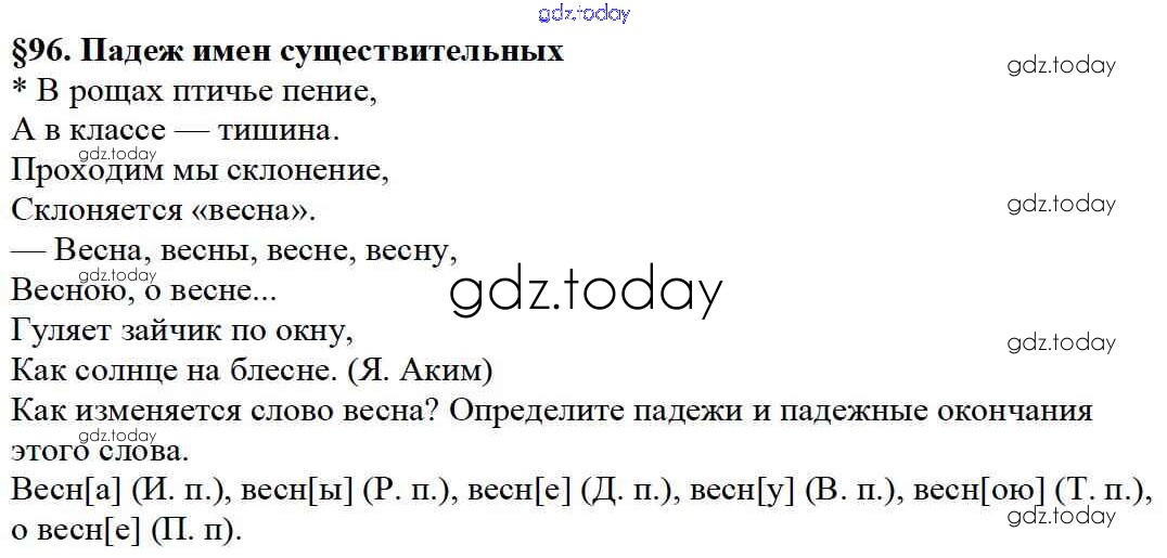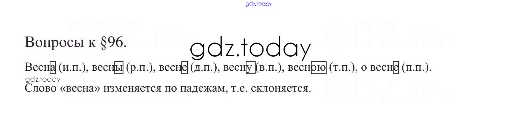 На страницах сайта gdz.today вы найдете учебный и вспомогательный материал, направленный на улучшения знаний школьной программы. ГДЗ - онлайн мир знаний Решение к вопросам §96 Учебнику по Русскому языку для 5 класса Баранов, Ладыженская Просвещение, Просвещение 2016, 2019