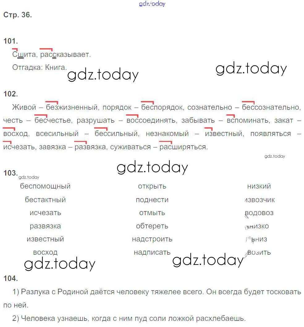 На страницах сайта gdz.today вы найдете учебный и вспомогательный материал, направленный на улучшения знаний школьной программы. ГДЗ - онлайн мир знаний Страницы (решение) 36 Рабочей тетради по Русскому языку для 5 класса Ларионова Дрофа УМК 2019