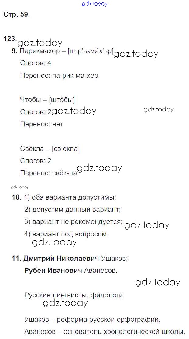 На страницах сайта gdz.today вы найдете учебный и вспомогательный материал, направленный на улучшения знаний школьной программы. ГДЗ - онлайн мир знаний Решение к части 1. Страницы 59 Рабочей тетради по Русскому языку для 5 класса Львов Экзамен УМК 2016