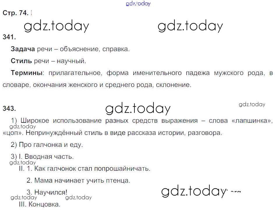 На страницах сайта gdz.today вы найдете учебный и вспомогательный материал, направленный на улучшения знаний школьной программы. ГДЗ - онлайн мир знаний Решение к части 2. Страницы 74 Рабочей тетради по Русскому языку для 5 класса Львов Экзамен УМК 2016