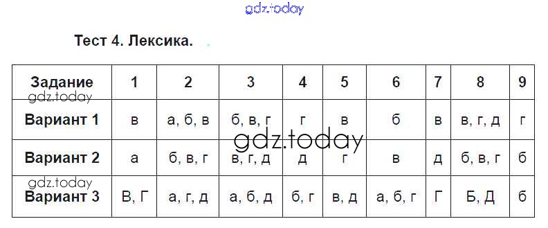 Ответы к Решение к тестам 4 Тестовым заданиям по Русскому языку для 5 класса Малюшкин Сфера 2019