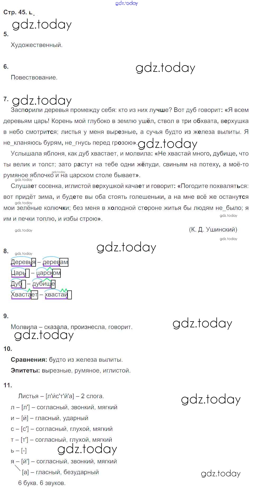 На страницах сайта gdz.today вы найдете учебный и вспомогательный материал, направленный на улучшения знаний школьной программы. ГДЗ - онлайн мир знаний Страницы (решение) 45 Рабочей тетради по Русскому языку для 5 класса Малюшкин Сфера 2019