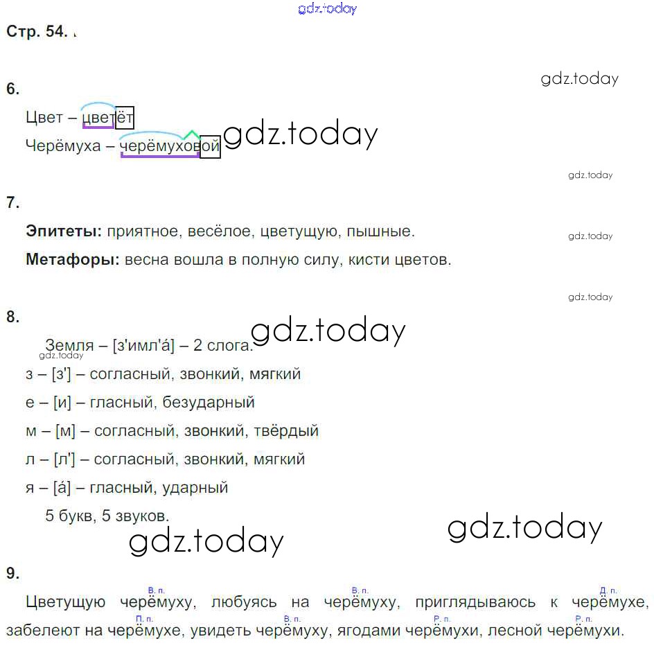На страницах сайта gdz.today вы найдете учебный и вспомогательный материал, направленный на улучшения знаний школьной программы. ГДЗ - онлайн мир знаний Страницы (решение) 54 Рабочей тетради по Русскому языку для 5 класса Малюшкин Сфера 2019