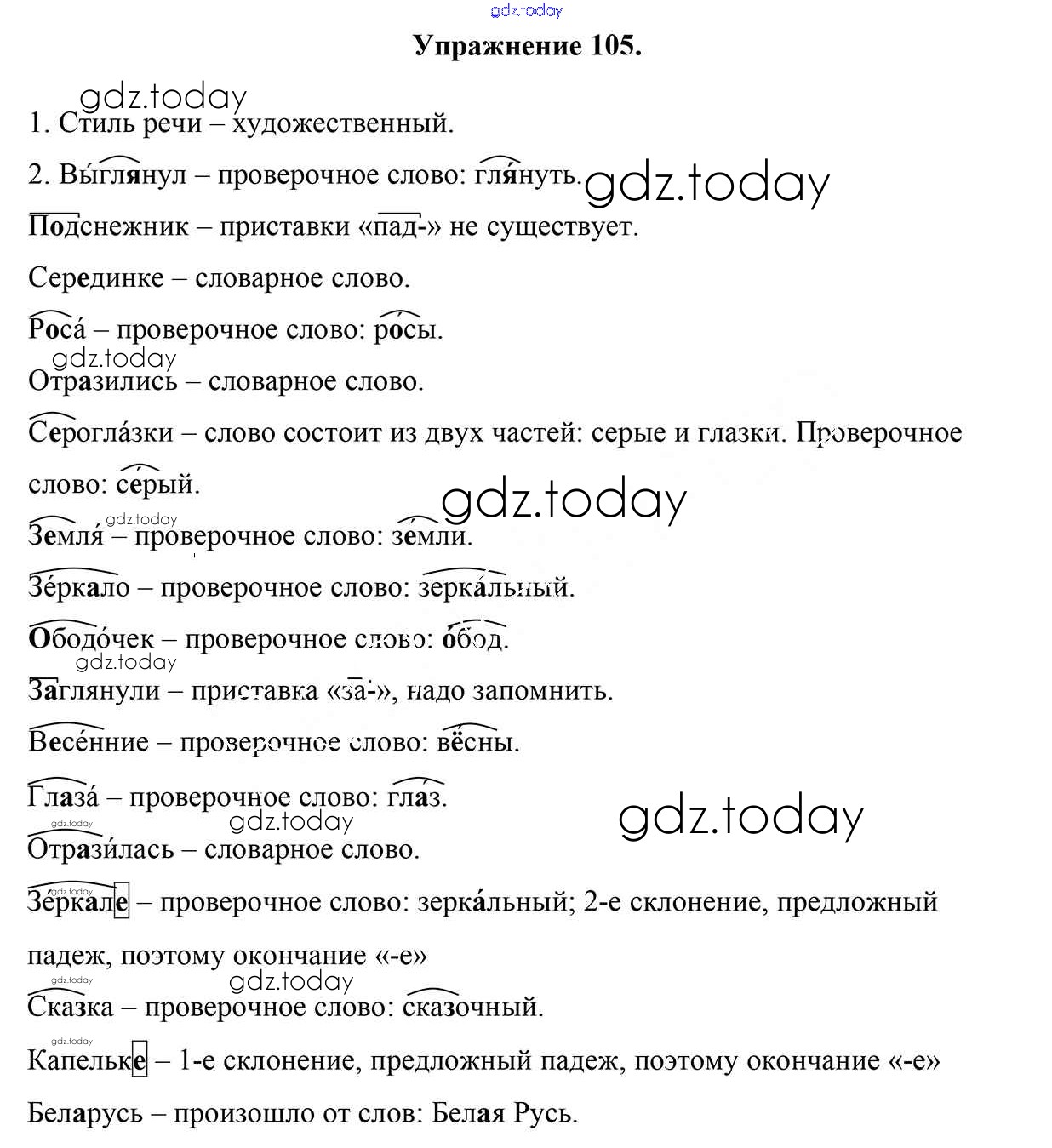 На страницах сайта gdz.today вы найдете учебный и вспомогательный материал, направленный на улучшения знаний школьной программы. ГДЗ - онлайн мир знаний Часть 1. Решение к Заданиям 105 Учебнику по Русскому языку для 5 класса Мурина, Игнатович Национальный институт образования 2014