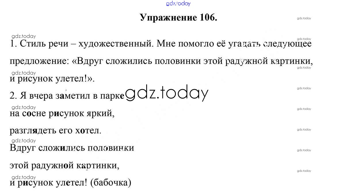 На страницах сайта gdz.today вы найдете учебный и вспомогательный материал, направленный на улучшения знаний школьной программы. ГДЗ - онлайн мир знаний Часть 1. Решение к Заданиям 106 Учебнику по Русскому языку для 5 класса Мурина, Игнатович Национальный институт образования 2014