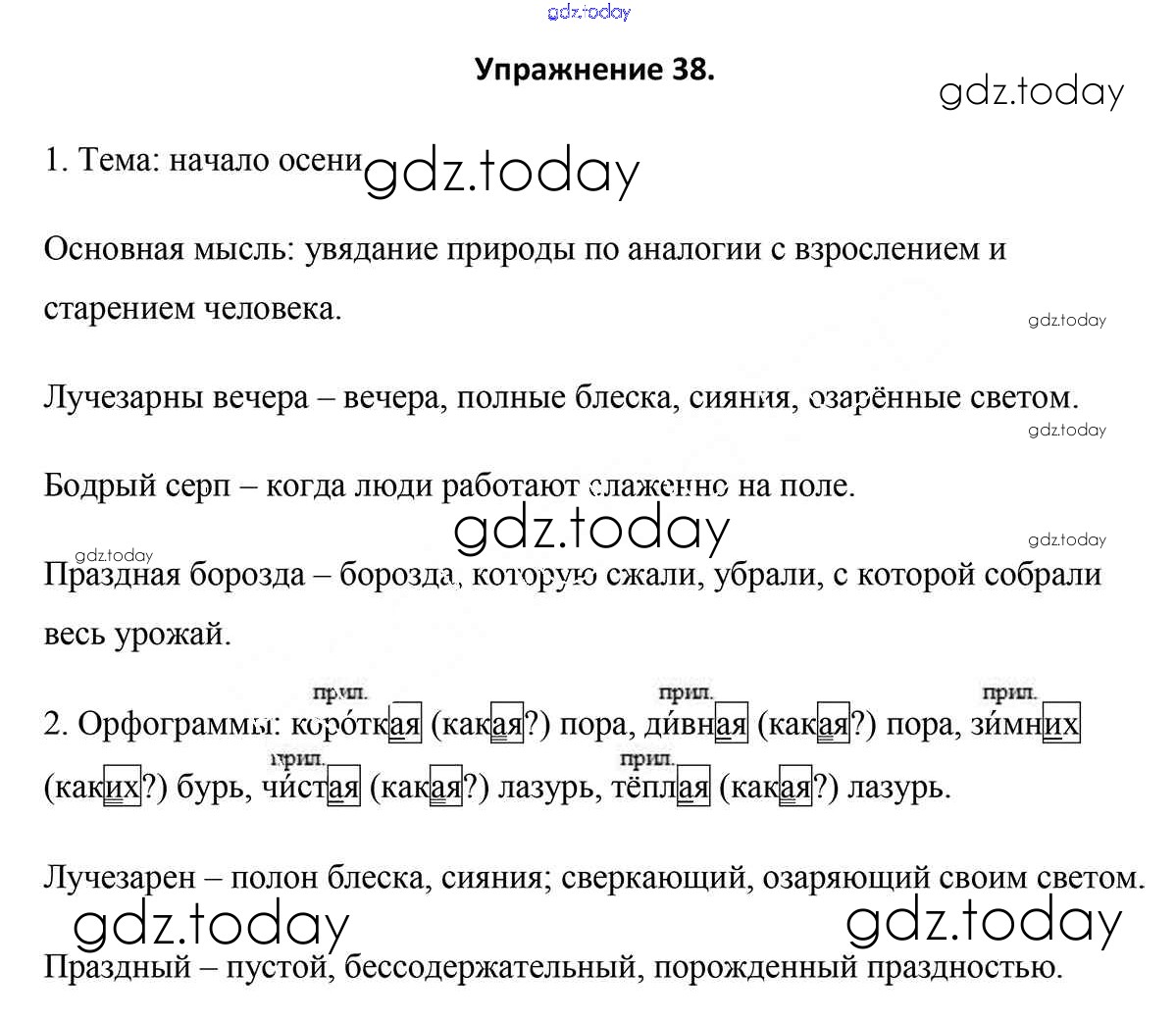 На страницах сайта gdz.today вы найдете учебный и вспомогательный материал, направленный на улучшения знаний школьной программы. ГДЗ - онлайн мир знаний Часть 1. Решение к Заданиям 38 Учебнику по Русскому языку для 5 класса Мурина, Игнатович Национальный институт образования 2014