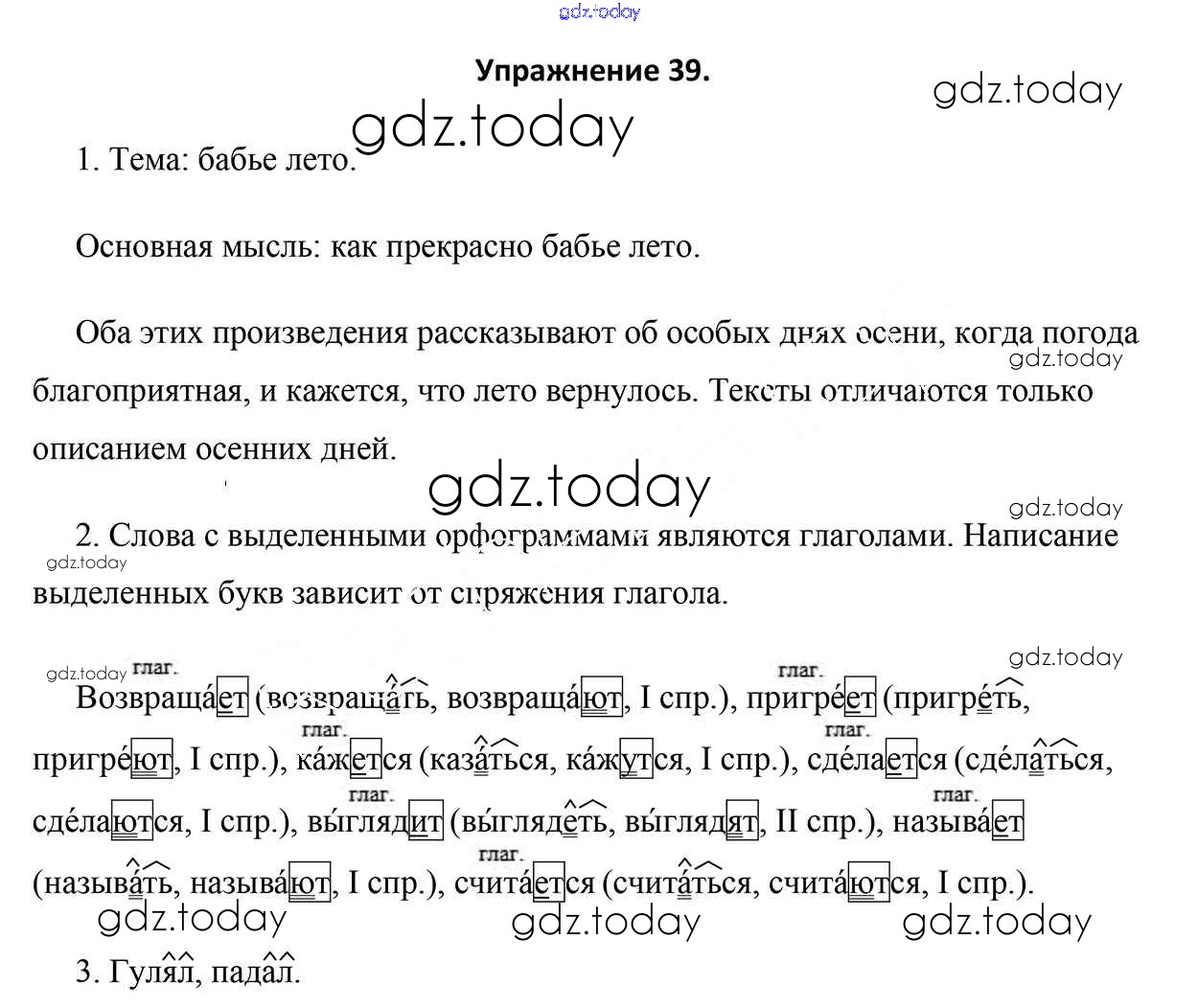 На страницах сайта gdz.today вы найдете учебный и вспомогательный материал, направленный на улучшения знаний школьной программы. ГДЗ - онлайн мир знаний Часть 1. Решение к Заданиям 39 Учебнику по Русскому языку для 5 класса Мурина, Игнатович Национальный институт образования 2014