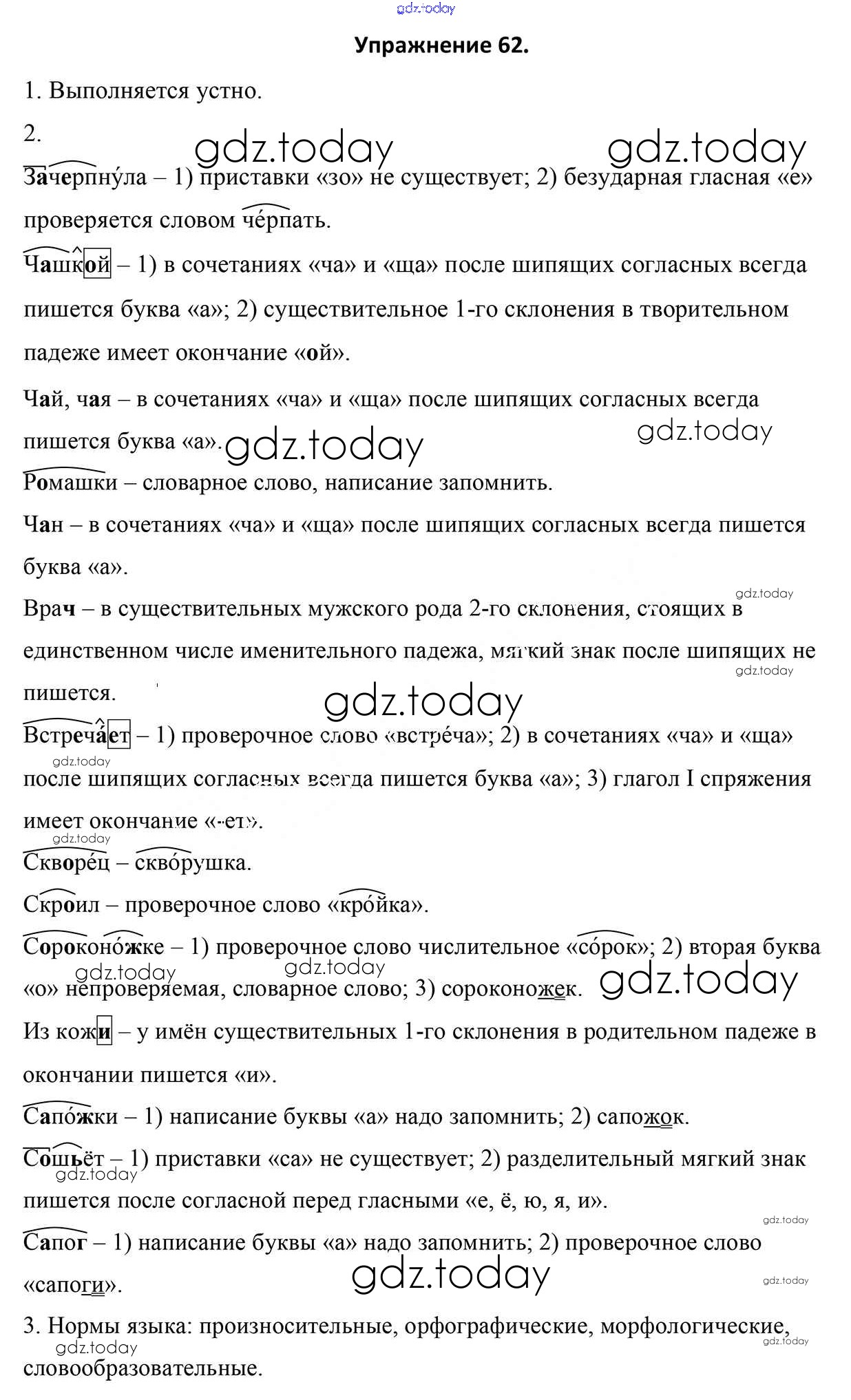 На страницах сайта gdz.today вы найдете учебный и вспомогательный материал, направленный на улучшения знаний школьной программы. ГДЗ - онлайн мир знаний Часть 1. Решение к Заданиям 62 Учебнику по Русскому языку для 5 класса Мурина, Игнатович Национальный институт образования 2014