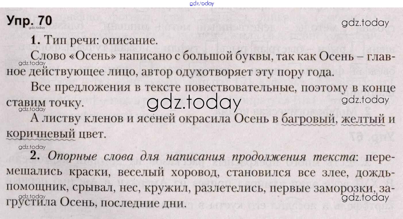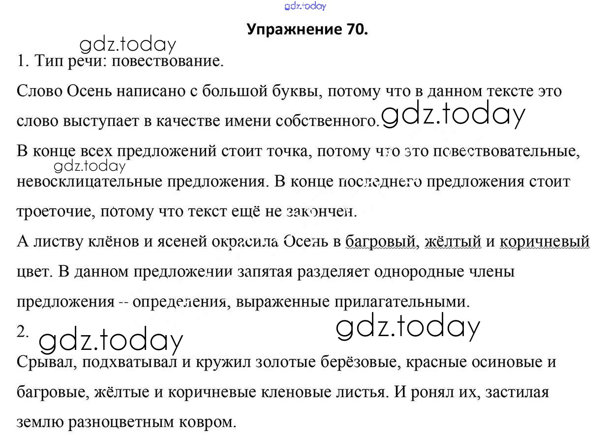 Ответы к Часть 1. Решение к Заданиям 70 Учебнику по Русскому языку для 5 класса Мурина, Игнатович Национальный институт образования 2014