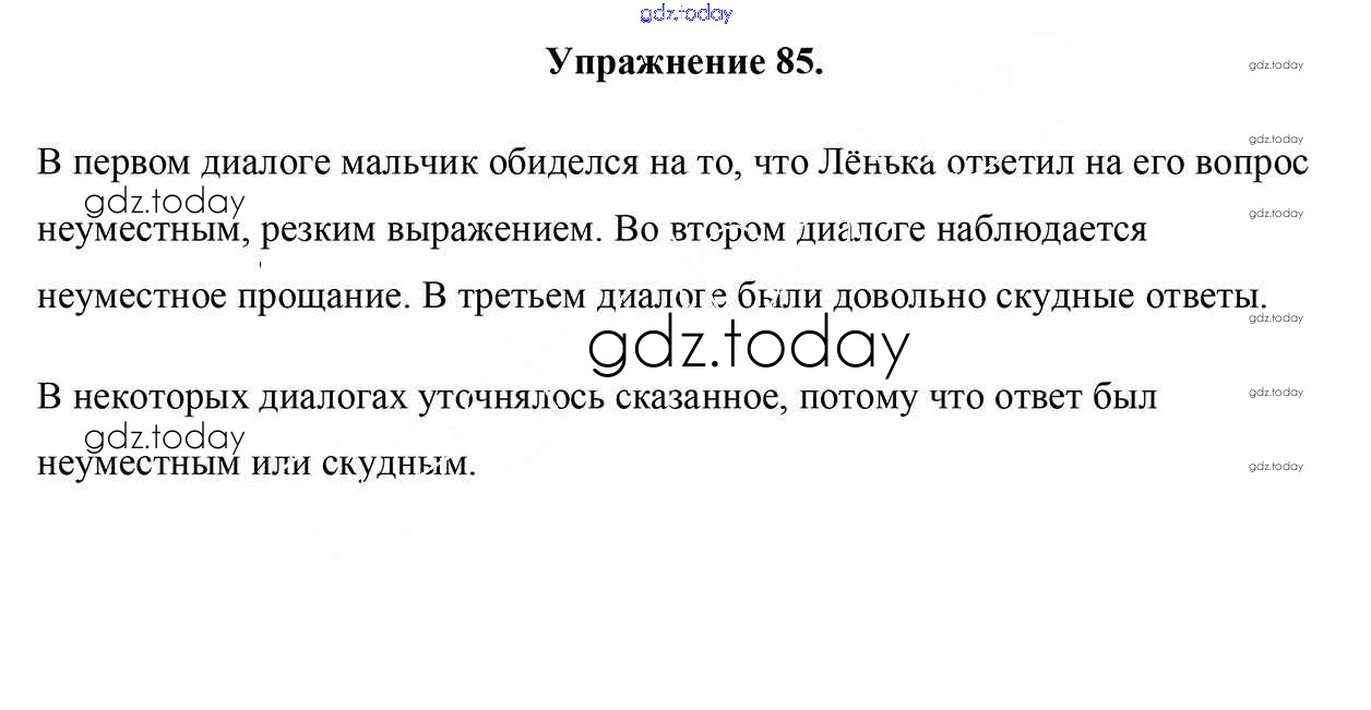На страницах сайта gdz.today вы найдете учебный и вспомогательный материал, направленный на улучшения знаний школьной программы. ГДЗ - онлайн мир знаний Часть 1. Решение к Заданиям 85 Учебнику по Русскому языку для 5 класса Мурина, Игнатович Национальный институт образования 2014