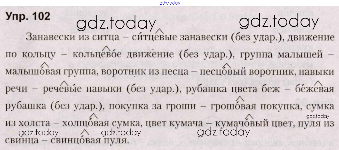 Ответы к Часть 2. Решение к Заданиям 102 Учебнику по Русскому языку для 5 класса Мурина, Игнатович Национальный институт образования 2014