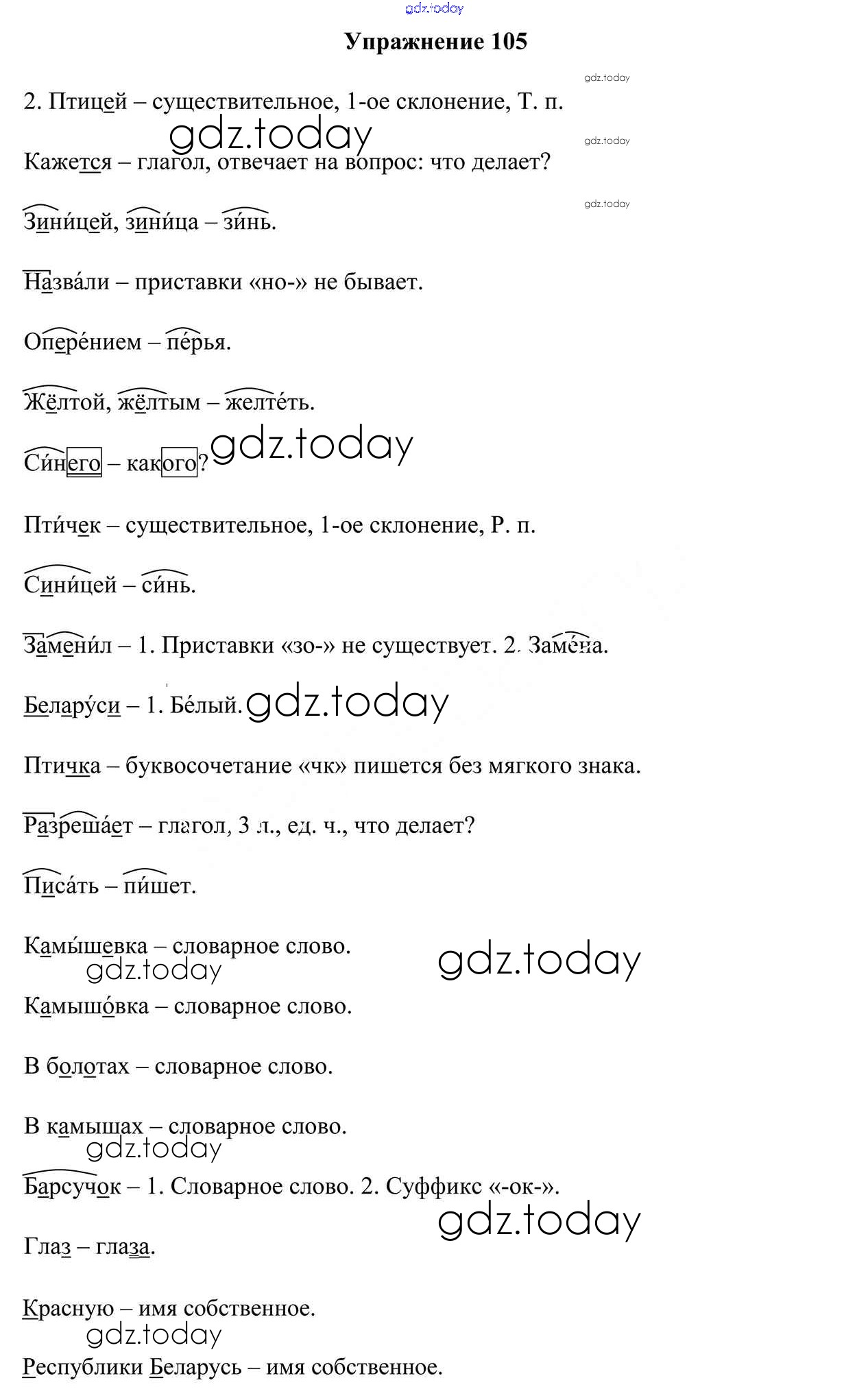 На страницах сайта gdz.today вы найдете учебный и вспомогательный материал, направленный на улучшения знаний школьной программы. ГДЗ - онлайн мир знаний Часть 2. Решение к Заданиям 105 Учебнику по Русскому языку для 5 класса Мурина, Игнатович Национальный институт образования 2014