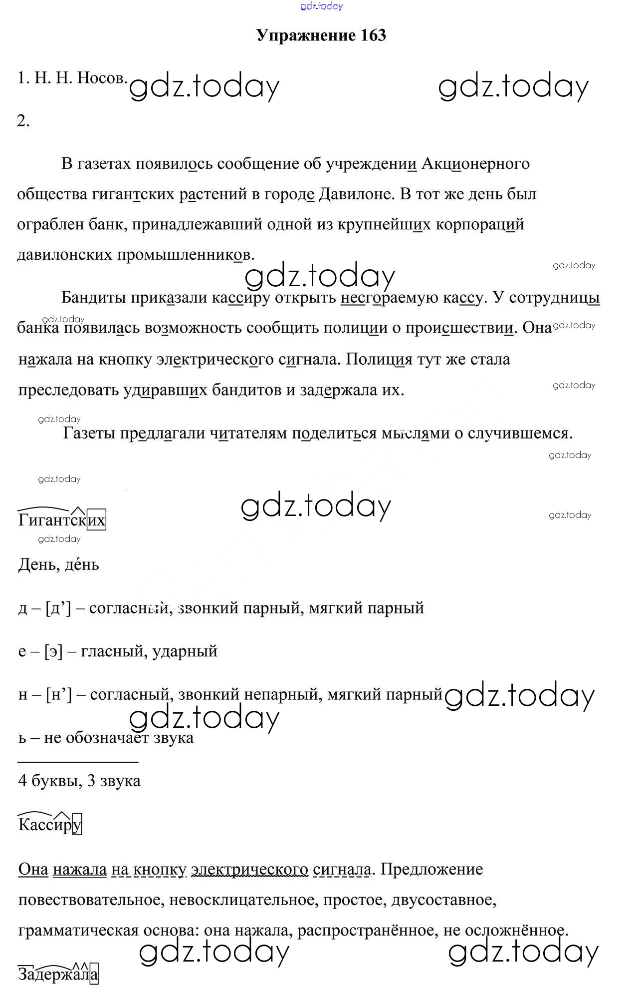 Ответы к Часть 2. Решение к Заданиям 163 Учебнику по Русскому языку для 5 класса Мурина, Игнатович Национальный институт образования 2014