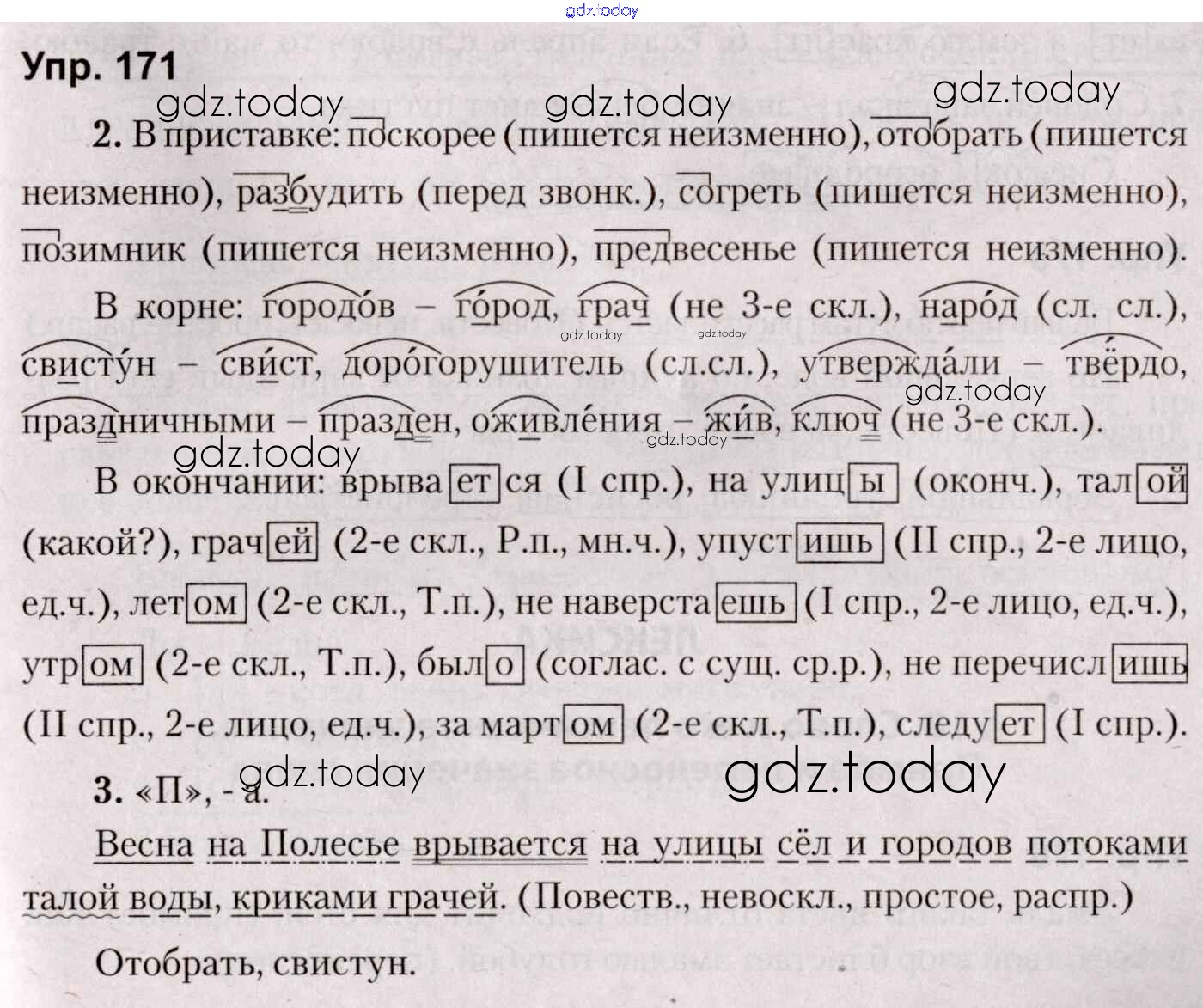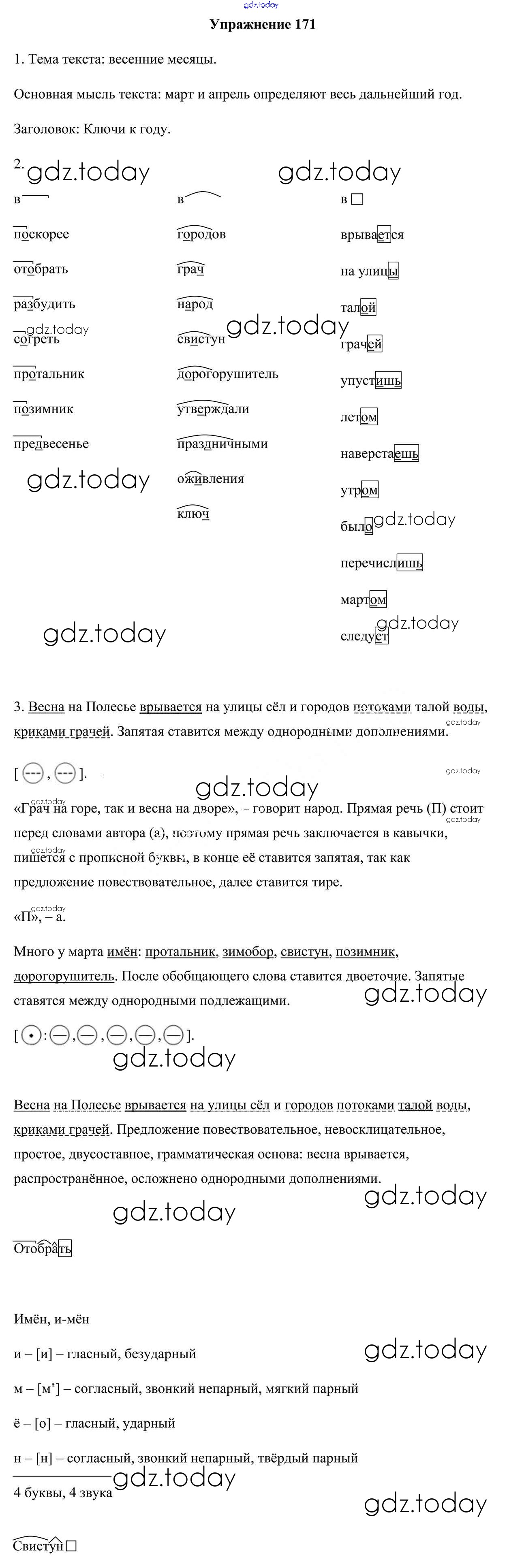 Ответы к Часть 2. Решение к Заданиям 171 Учебнику по Русскому языку для 5 класса Мурина, Игнатович Национальный институт образования 2014