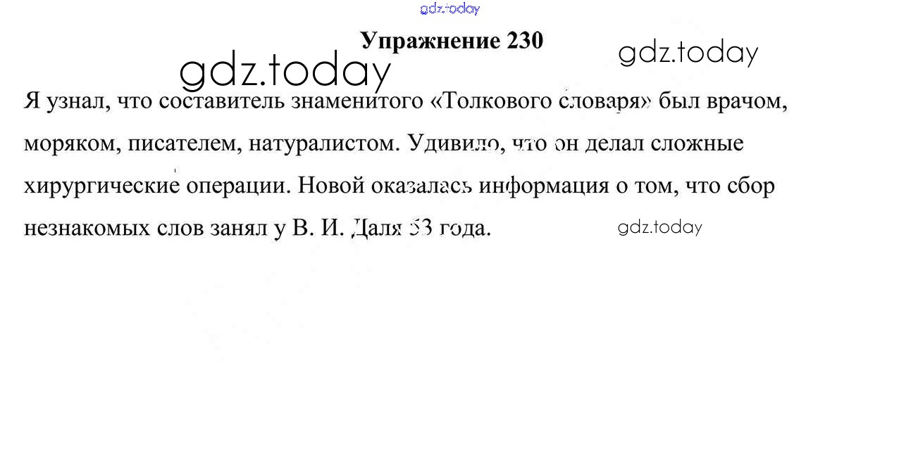 На страницах сайта gdz.today вы найдете учебный и вспомогательный материал, направленный на улучшения знаний школьной программы. ГДЗ - онлайн мир знаний Часть 2. Решение к Заданиям 230 Учебнику по Русскому языку для 5 класса Мурина, Игнатович Национальный институт образования 2014