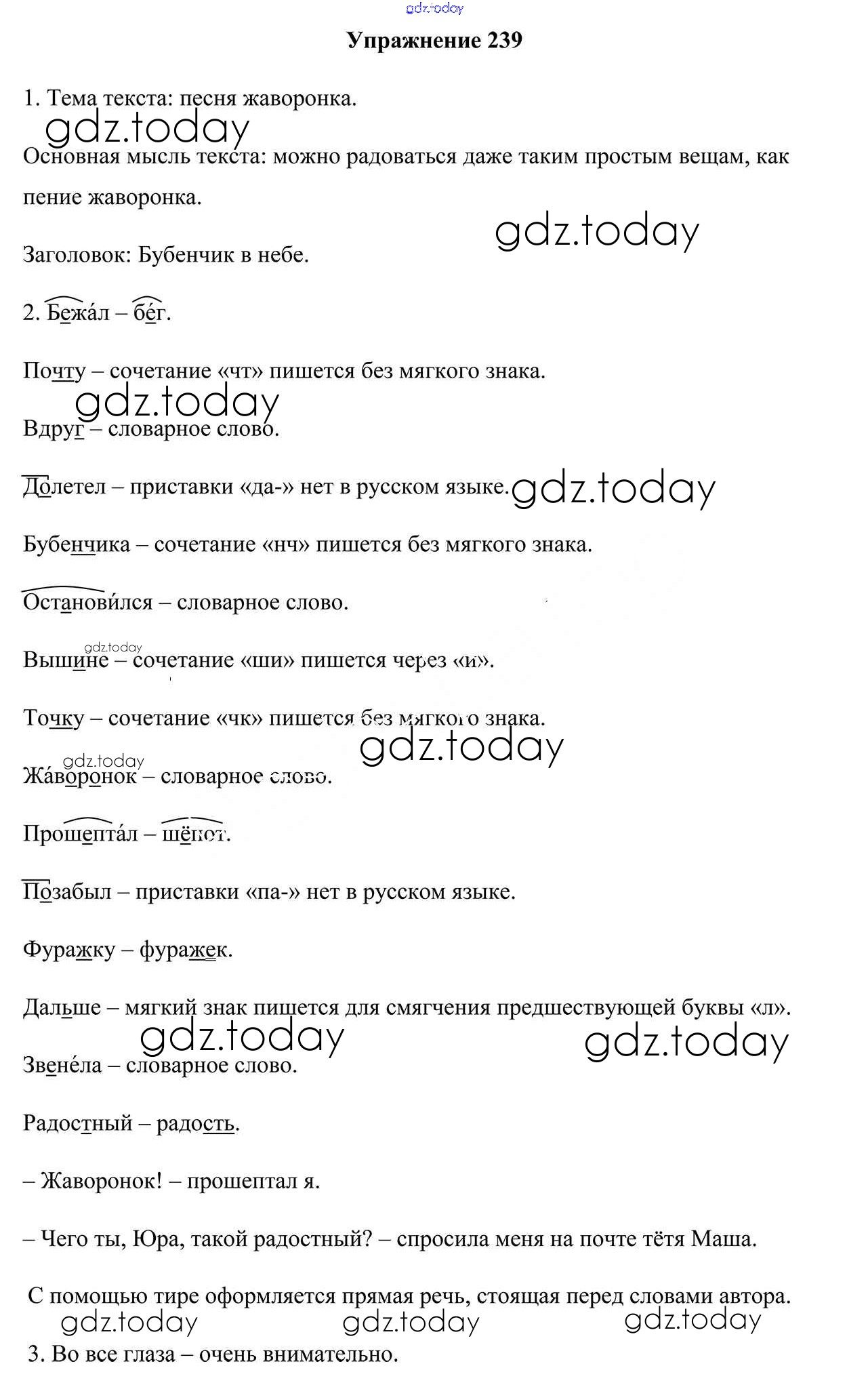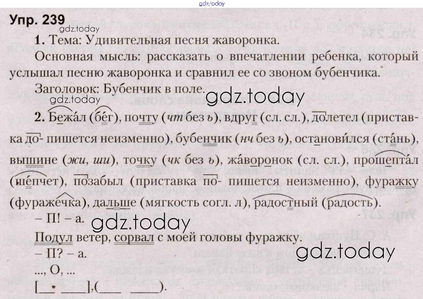 На страницах сайта gdz.today вы найдете учебный и вспомогательный материал, направленный на улучшения знаний школьной программы. ГДЗ - онлайн мир знаний Часть 2. Решение к Заданиям 239 Учебнику по Русскому языку для 5 класса Мурина, Игнатович Национальный институт образования 2014