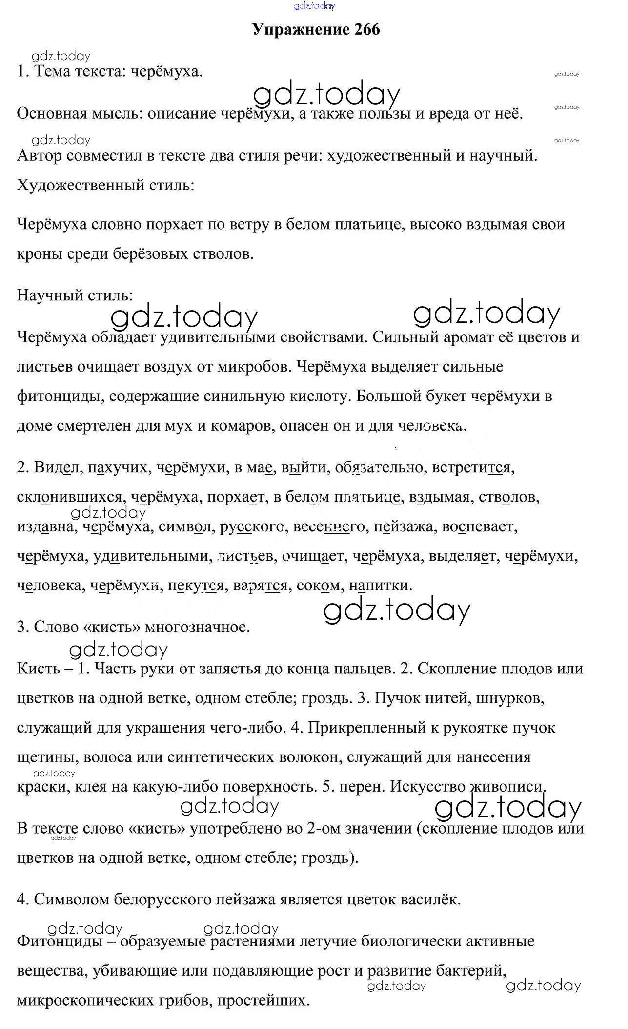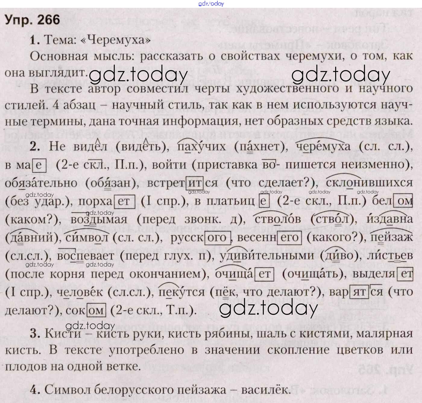 Ответы к Часть 2. Решение к Заданиям 266 Учебнику по Русскому языку для 5 класса Мурина, Игнатович Национальный институт образования 2014