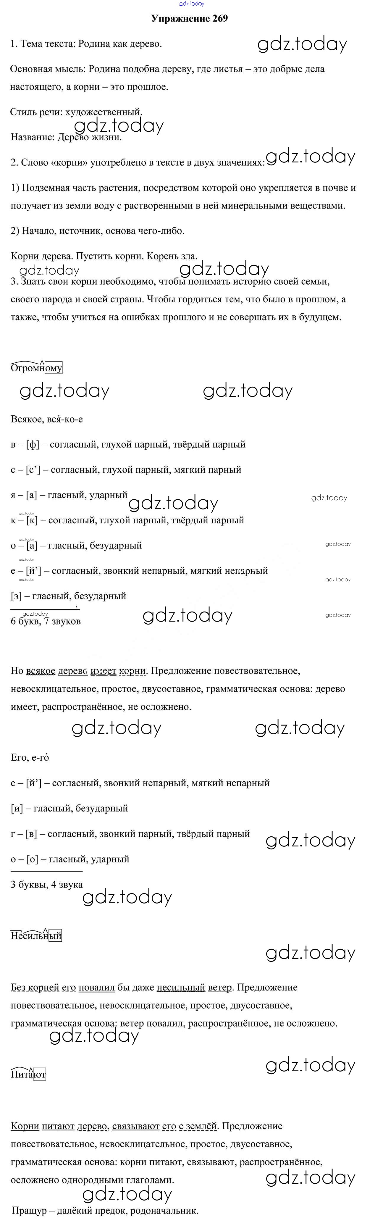 Ответы к Часть 2. Решение к Заданиям 269 Учебнику по Русскому языку для 5 класса Мурина, Игнатович Национальный институт образования 2014