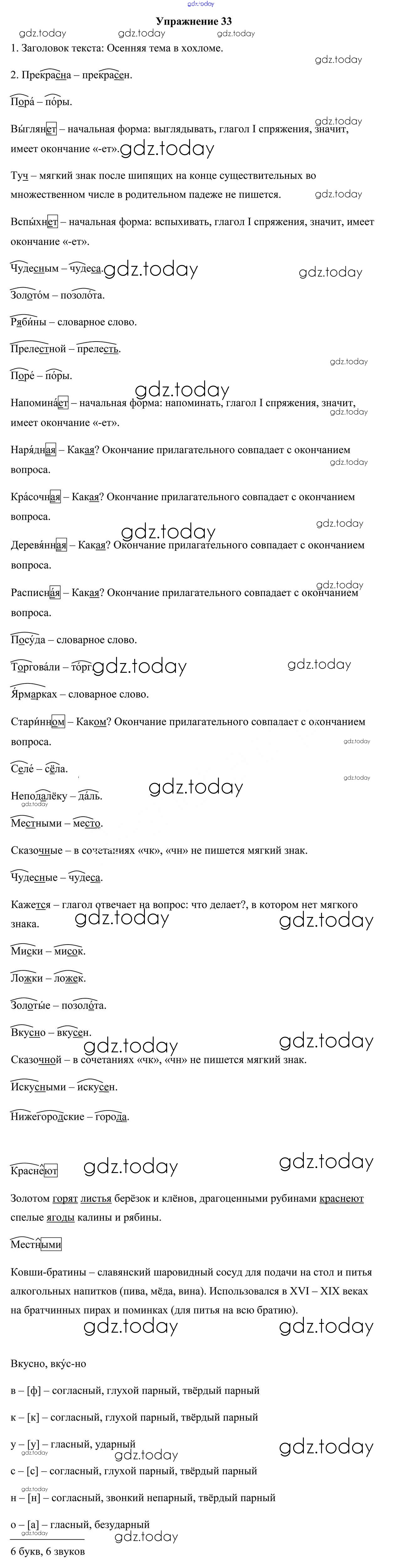 Ответы к Часть 2. Решение к Заданиям 33 Учебнику по Русскому языку для 5 класса Мурина, Игнатович Национальный институт образования 2014